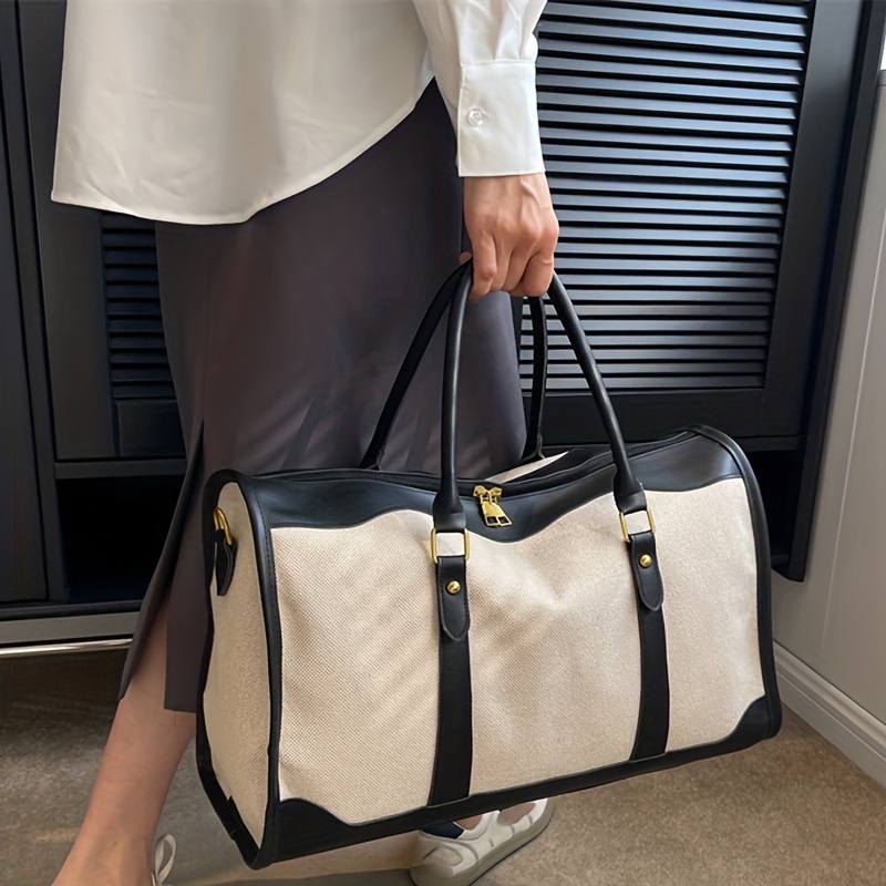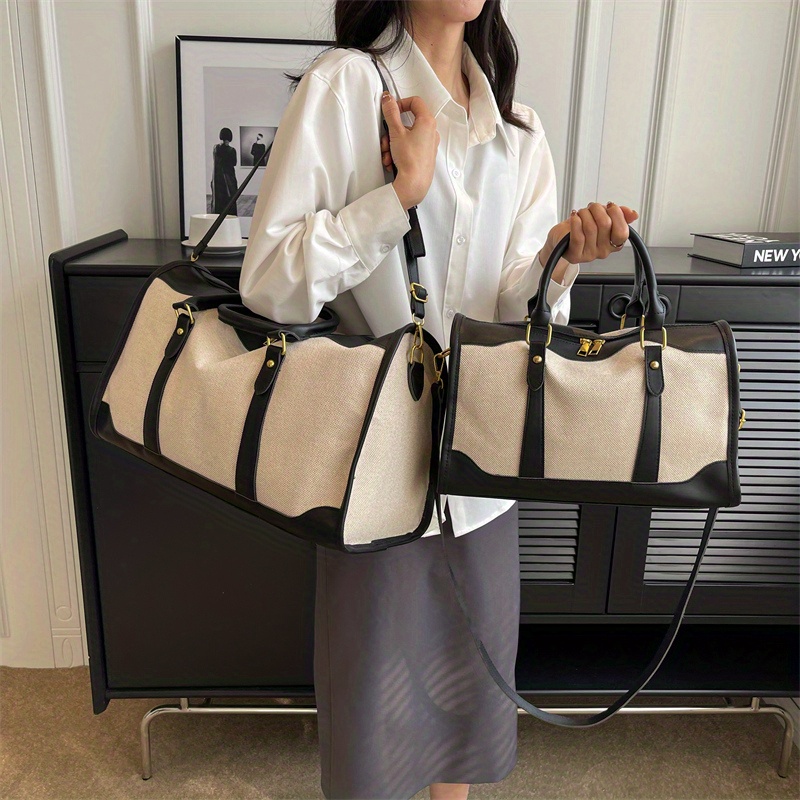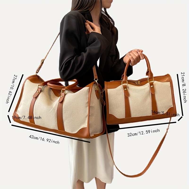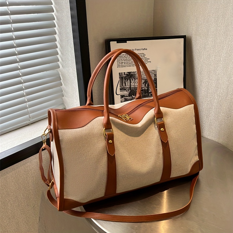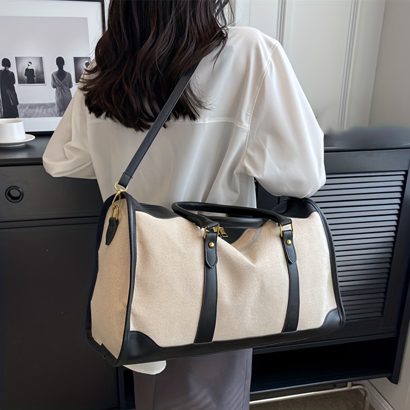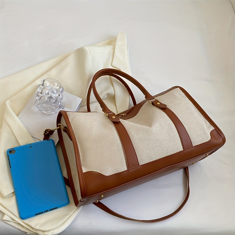 11% OFFCanvas Boston Bag For Women, Large Capacity Travel Handbag, Vintage Stitching Crossbody Bag