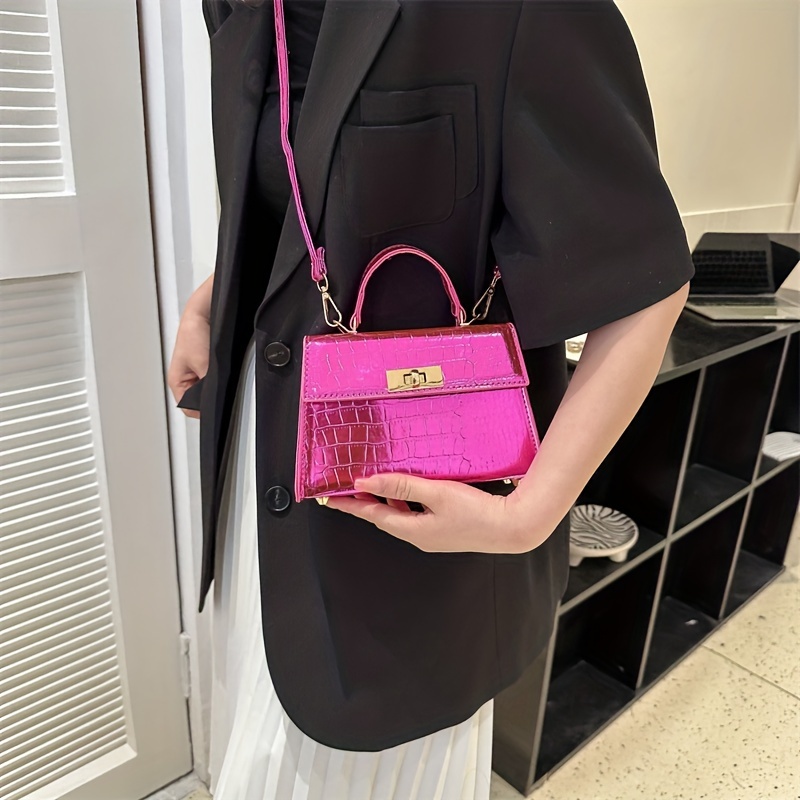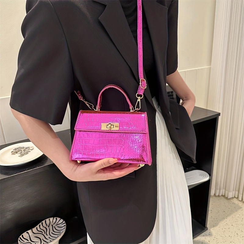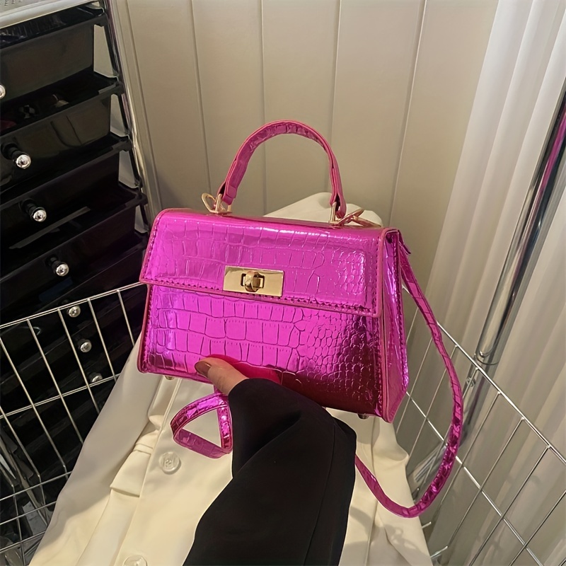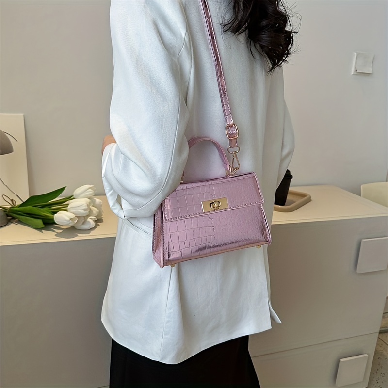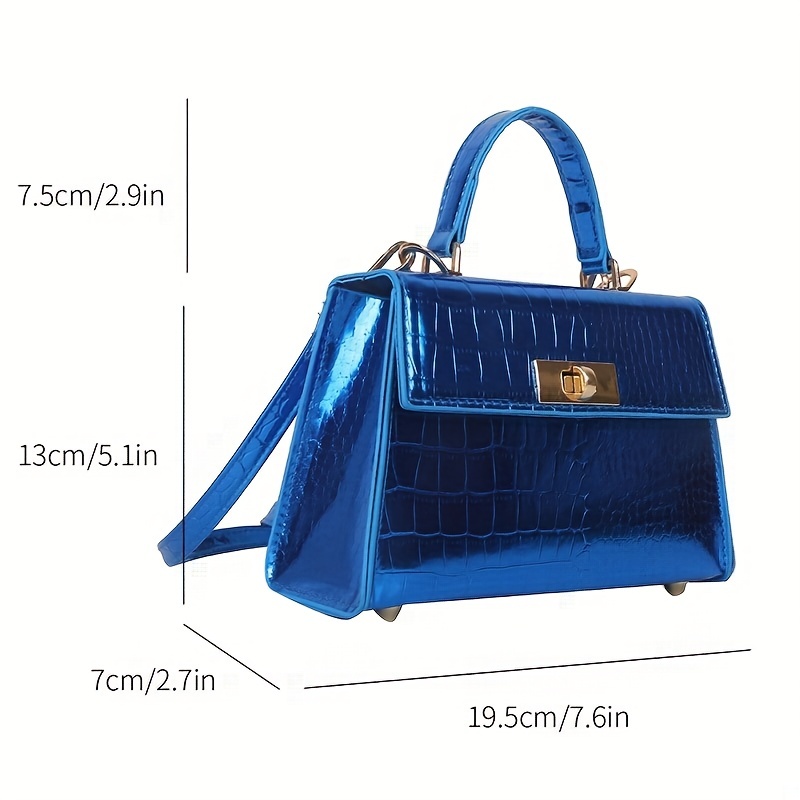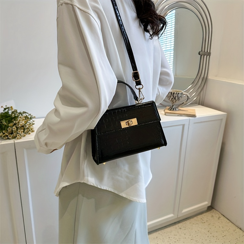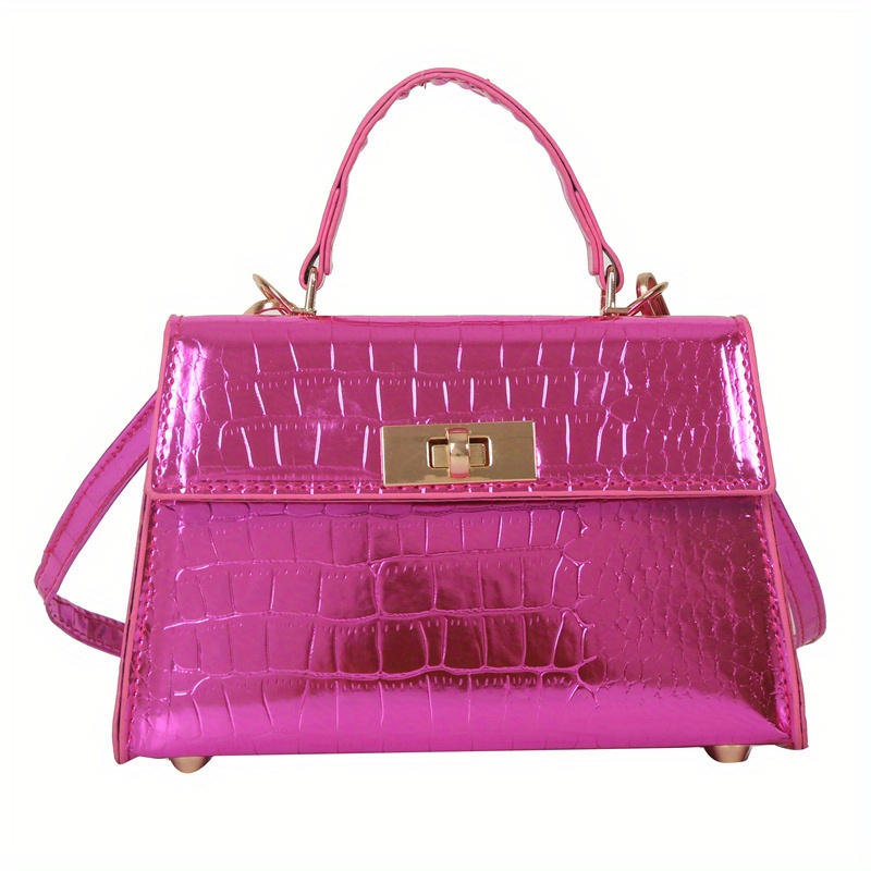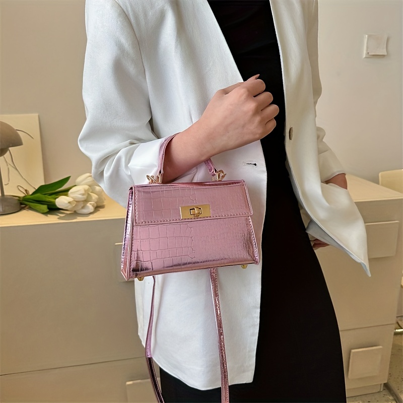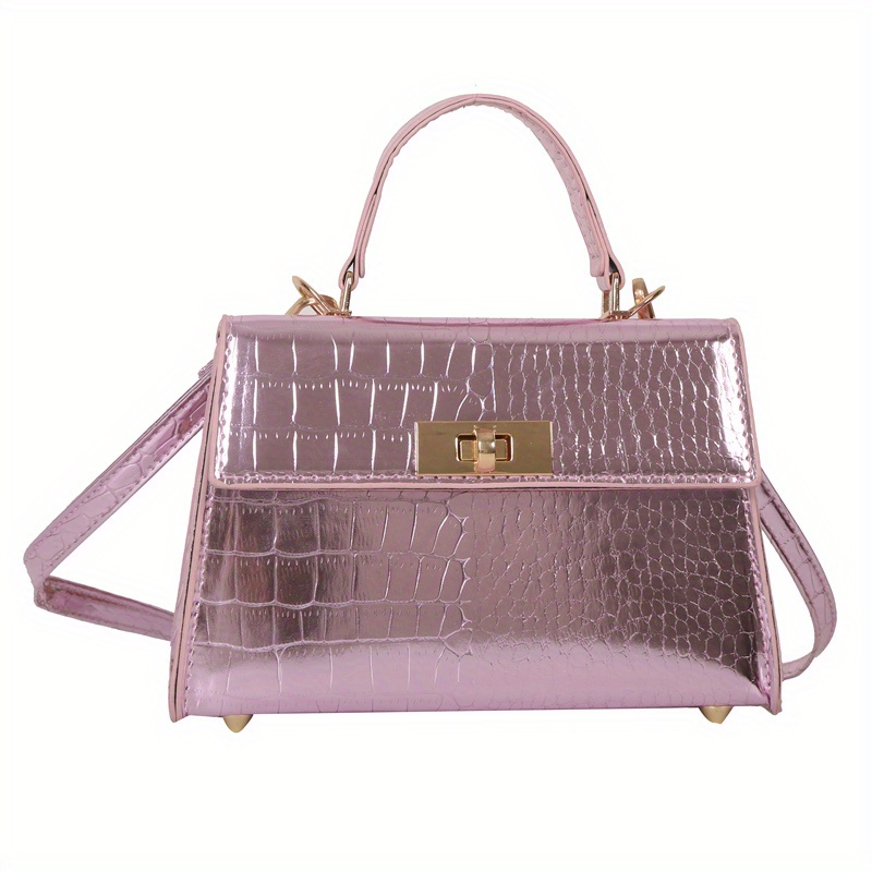 3% OFFMetallic Crocodile Embossed Handbbag, Turn Lock Crossbody Bag, Women's PU Leather Flap Purse
