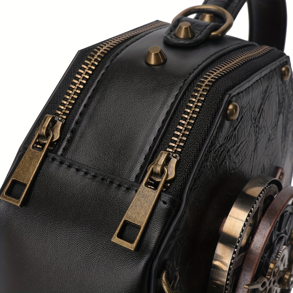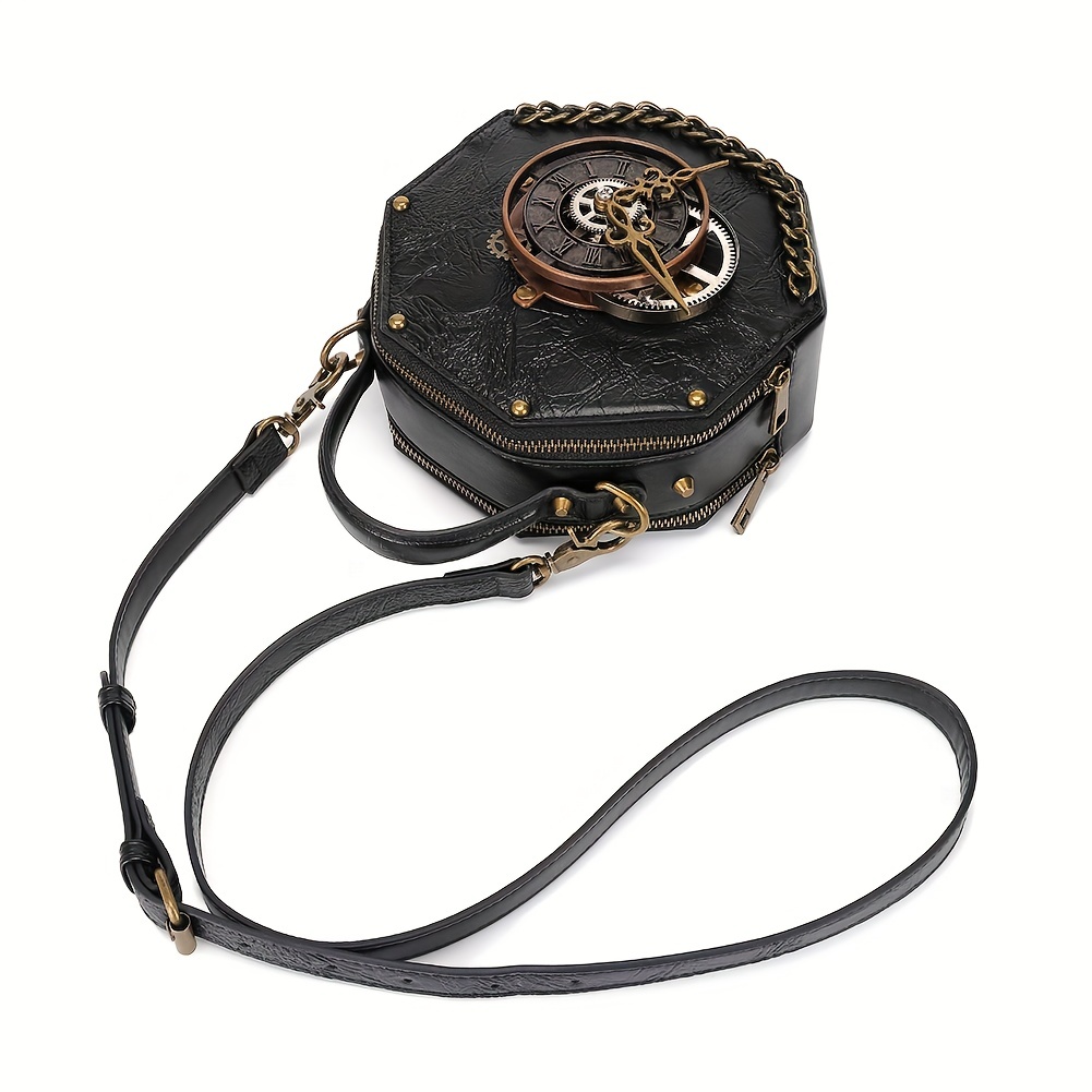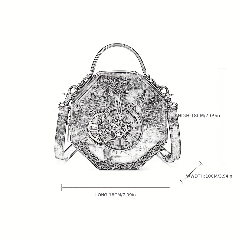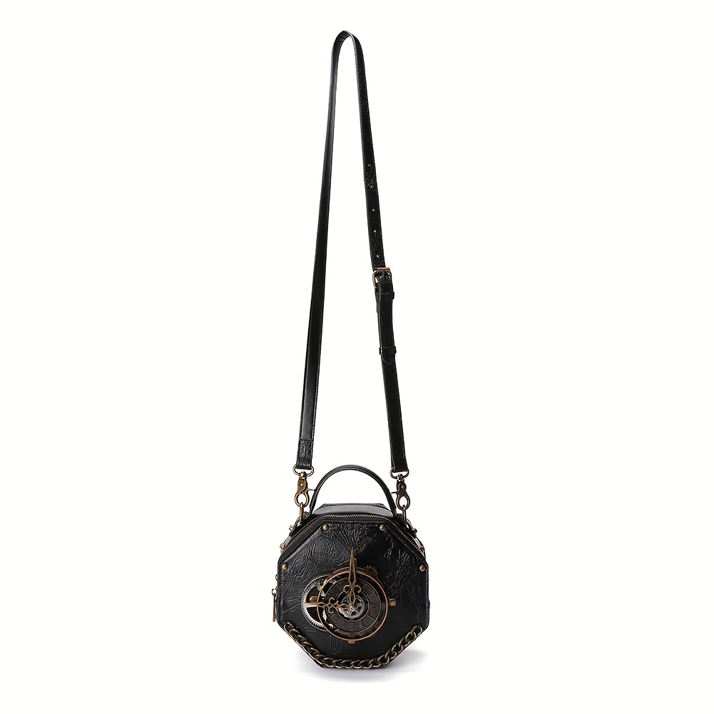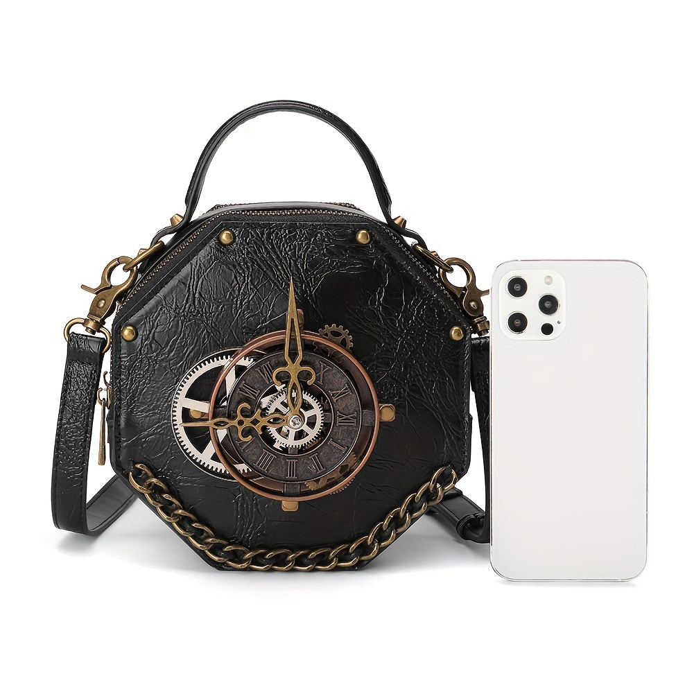 9% OFFVintage Clock Design Punk Shoulder Bag, Retro Zipper Satchel Bag, Women's Classic Bag