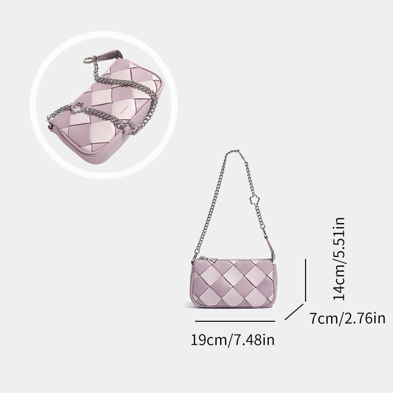 11% OFFColorblock Braided Shoulder Bag, Zipper Underarm Bag, Trendy Minimalist Chain Bag