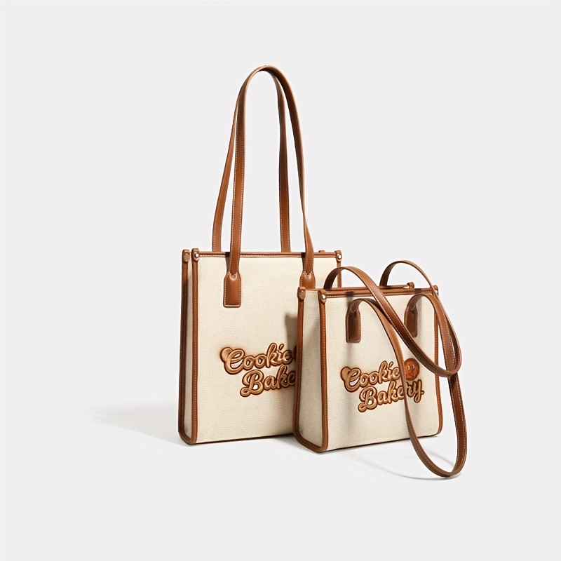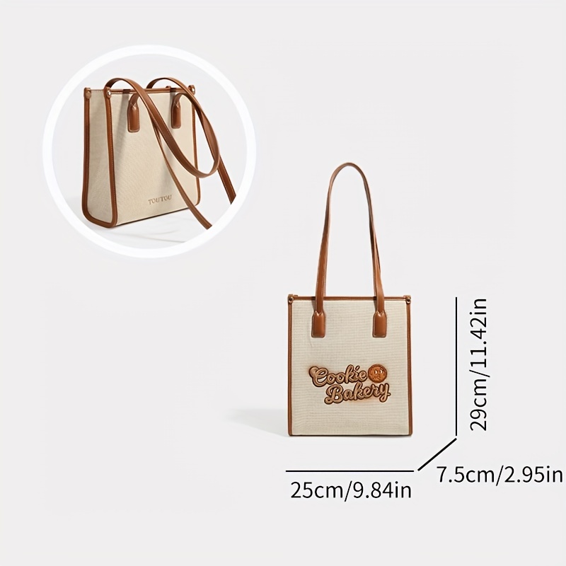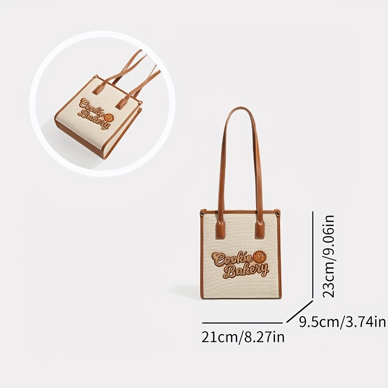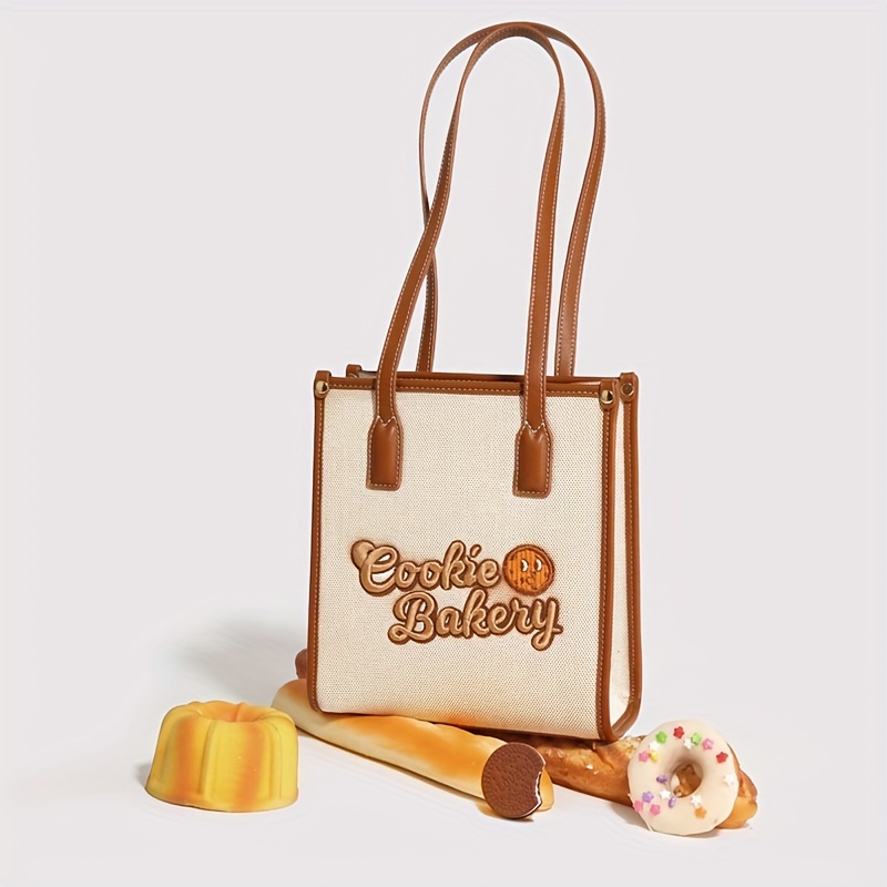 6% OFFCookie Embroidery Canvas Handbag, Small Square Shoulder Bag, Cute Underarm Purse For Women