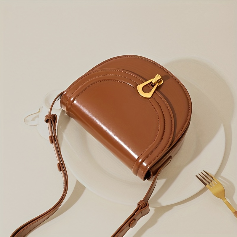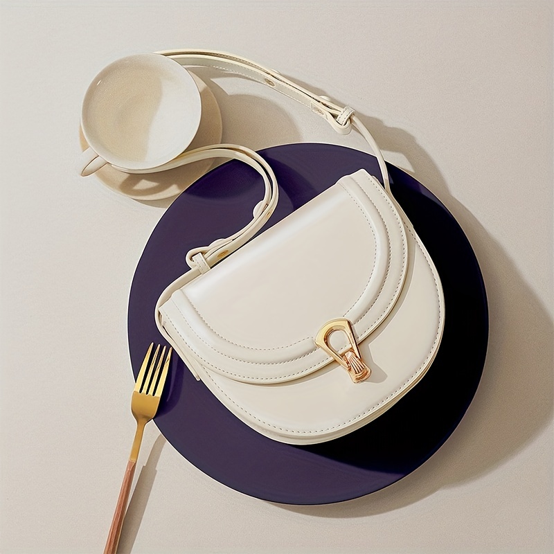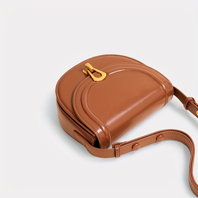 11% OFFTOUTOU Vintage Style Saddle Bag, Solid Color Crossbody Bag, Buckle Decor Flap Purse For Women