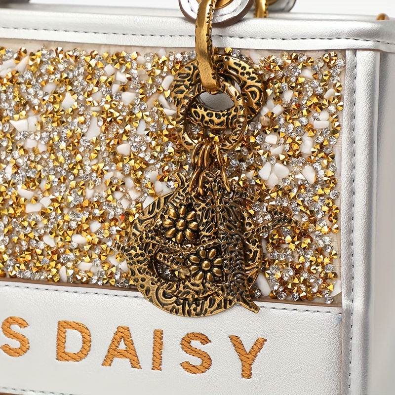 13% OFFSequins Tote Bag For Women, Trendy Square Crossbody Bag, Vintage Satchel Purse With Pendant