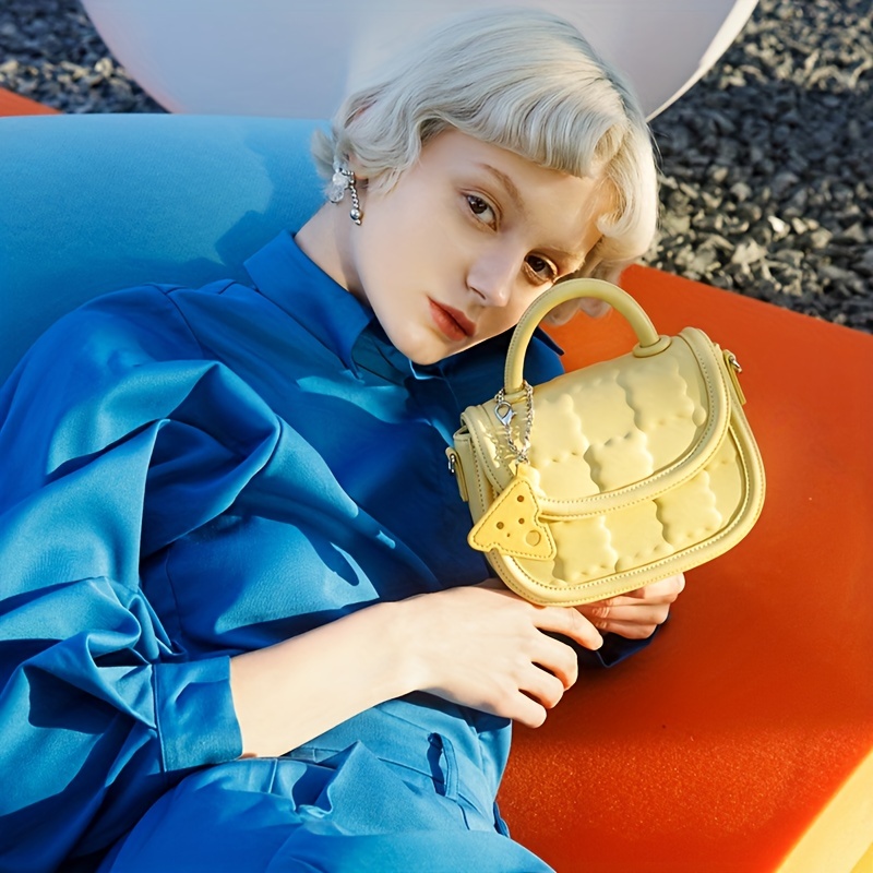 11% OFFTOUTOU Cookie Embossed Handbag, Mini PU Leather Crossbody Bag, Women's Flap Saddle Purse
