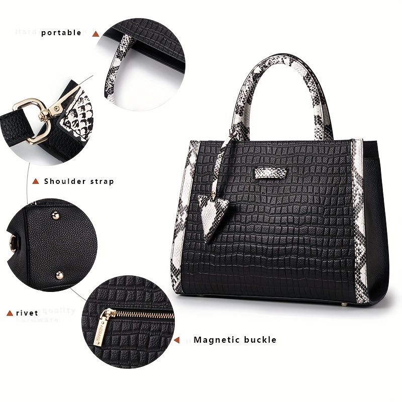 25% OFFSnakeskin Pattern Tote Bag, Fashion Embossed Crossbody Bag, Women's Leather Satchel Purse