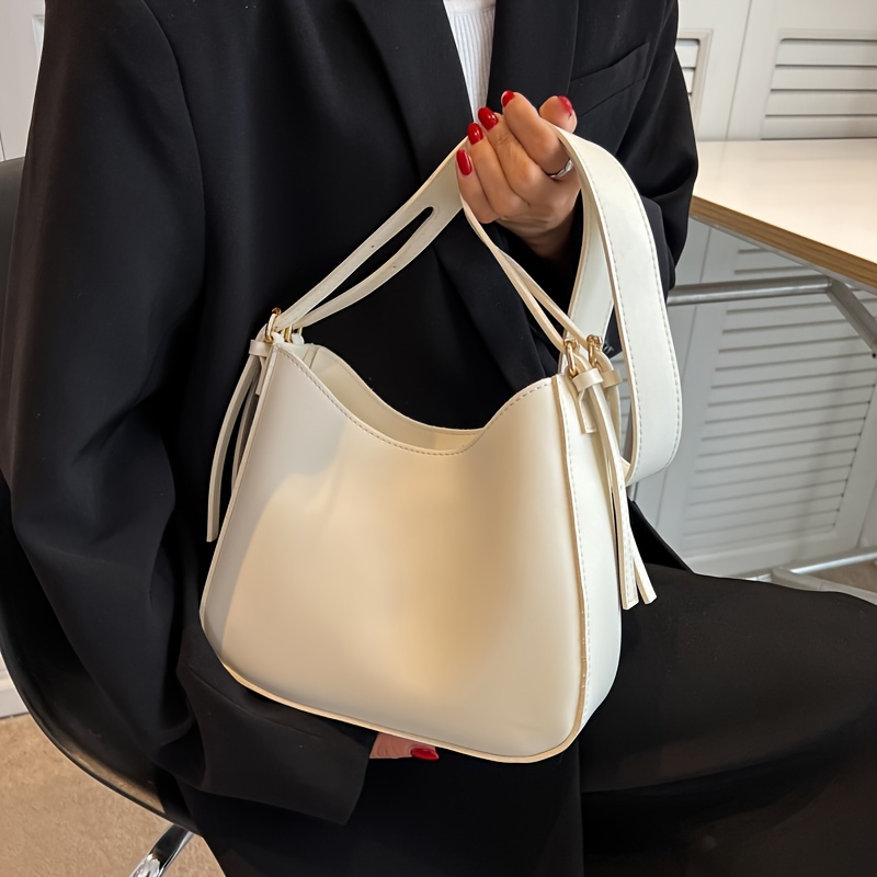 24% OFFMinimalist Shoulder Bag, Women's Solid Color Crossbody Bag, Trendy Faux Leather Zipper Purse