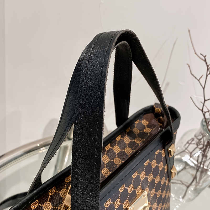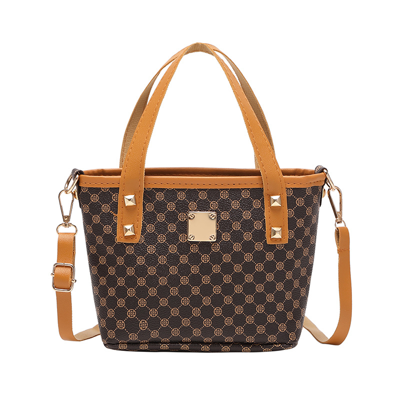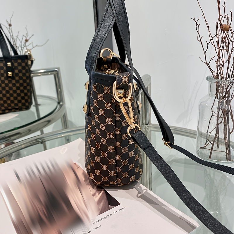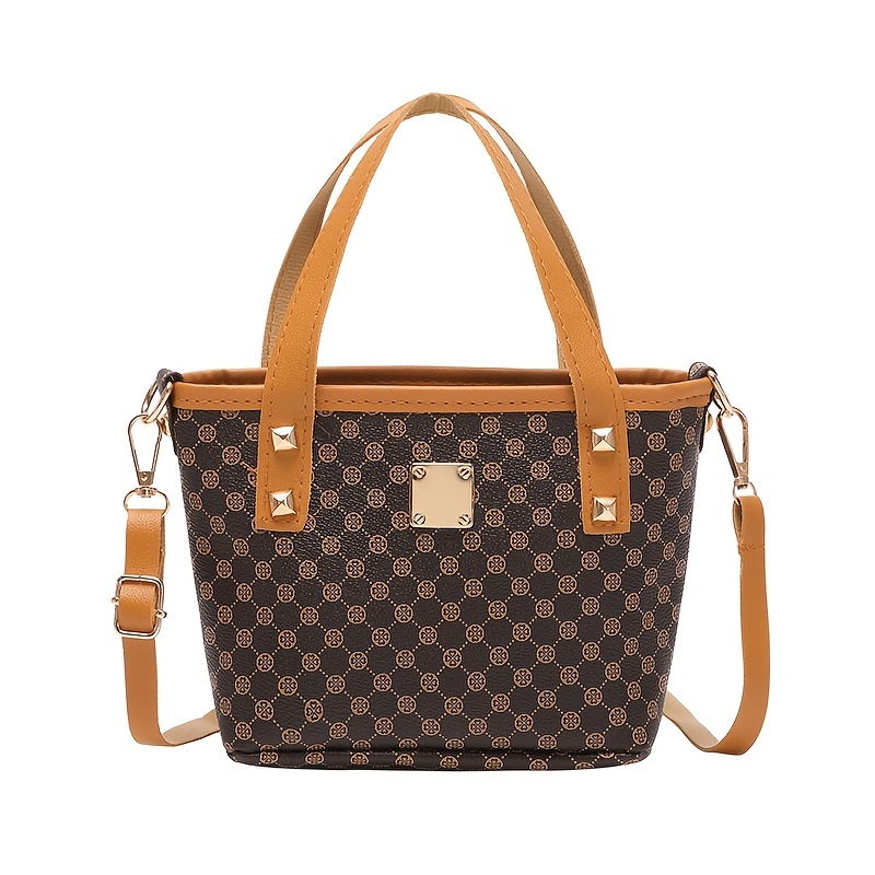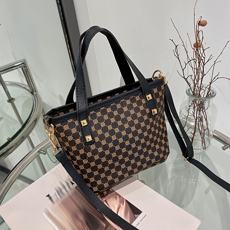 20% OFFGeometric Pattern Shoulder Bucket Bag, Studded Decor Crossbody Bag, Women's Top Handle Purse