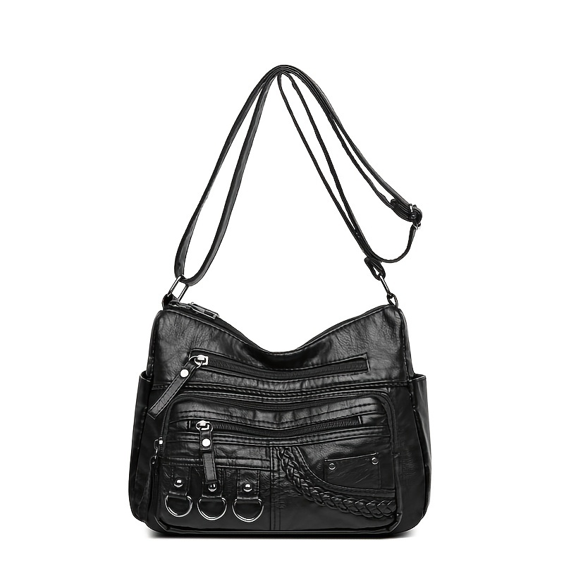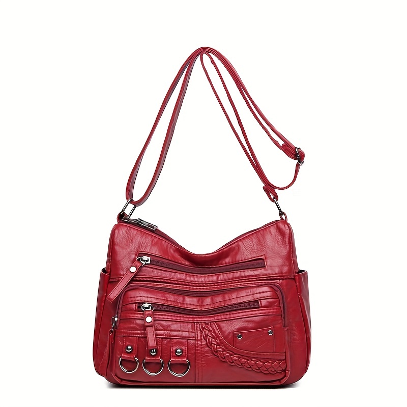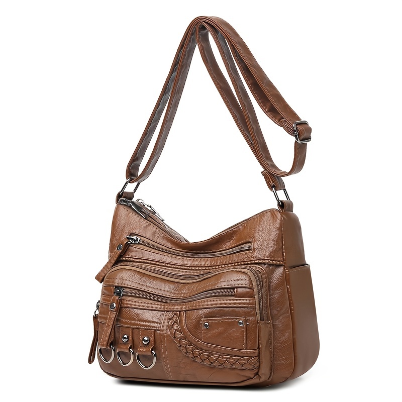 27% OFFBraided Detail Crossbody Bag, Women's Multi Pockets Shoulder Bag, Middle-aged Mother Soft Leather Purse