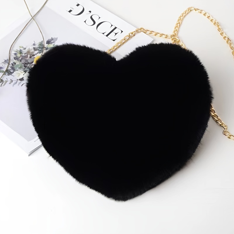 22% OFFHeart Shaped Fluffy Shoulder Bag, Fashion Chain Crossbody Bag, Cute Zipper Purse For Valentine's Day