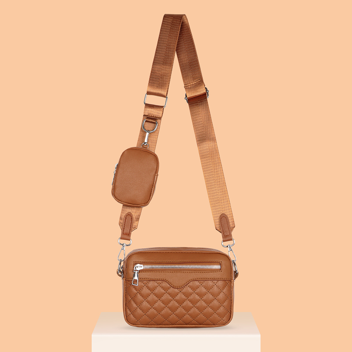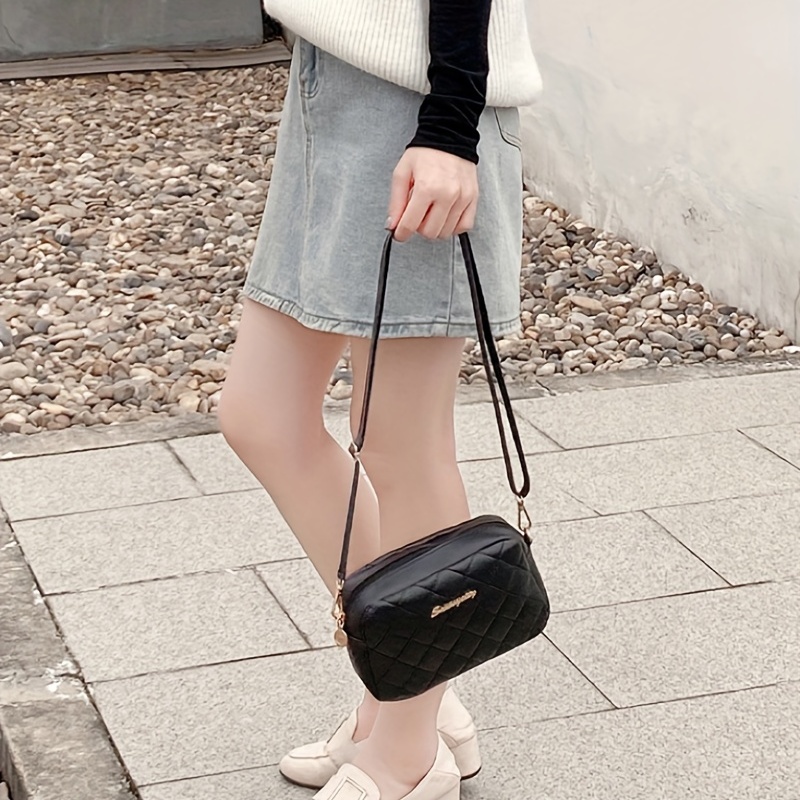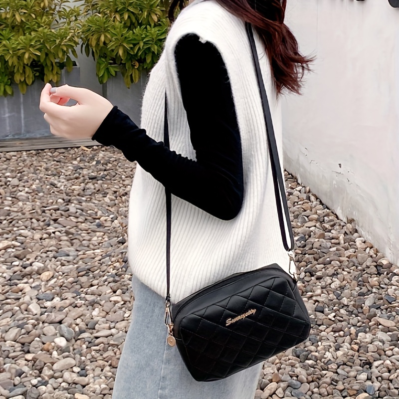19% OFFArgyle Quilted Zipper Shoulder Bag, Women's Casual Crossbody Square Bag With Mini Coin Purses
