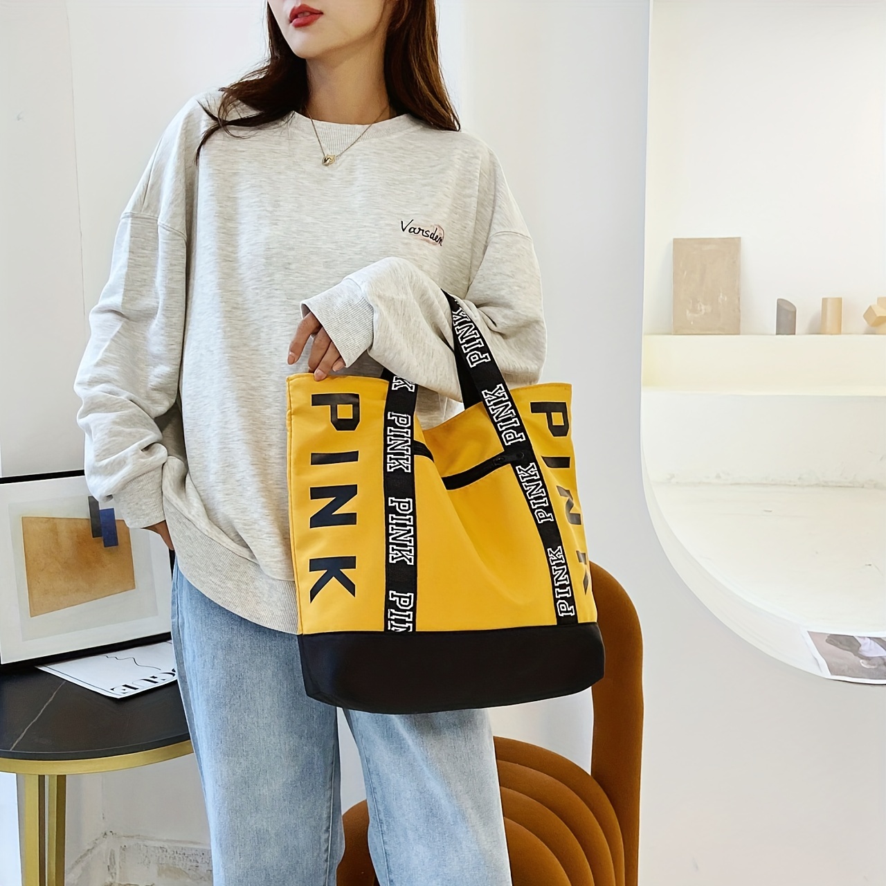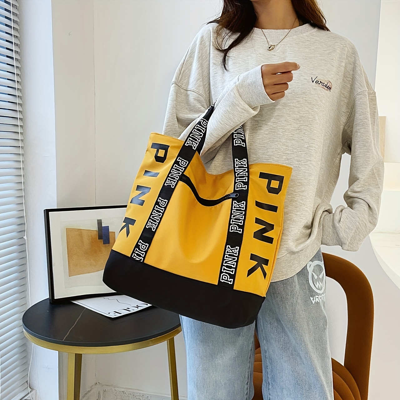 24% OFFLetter Graphic Tote Bag, Waterproof Nylon Handbag, Large Capacity Shopping Bag