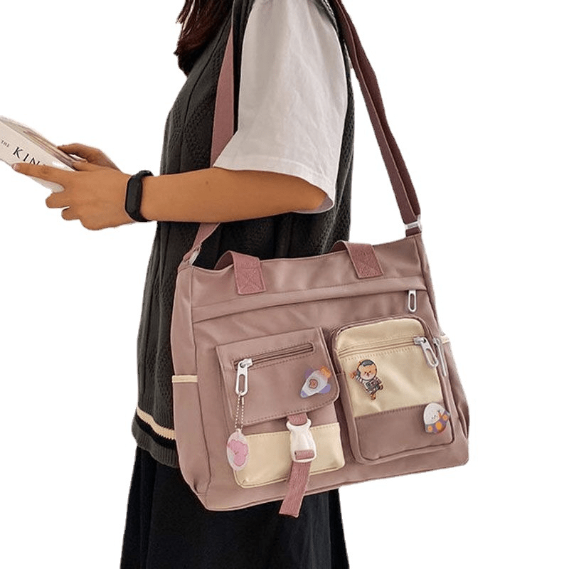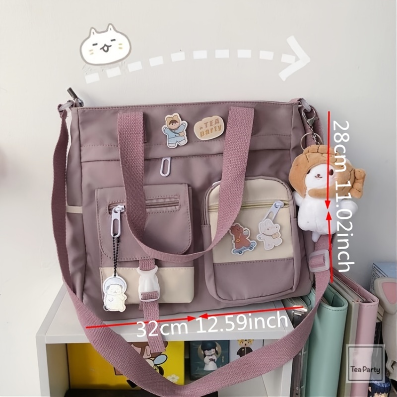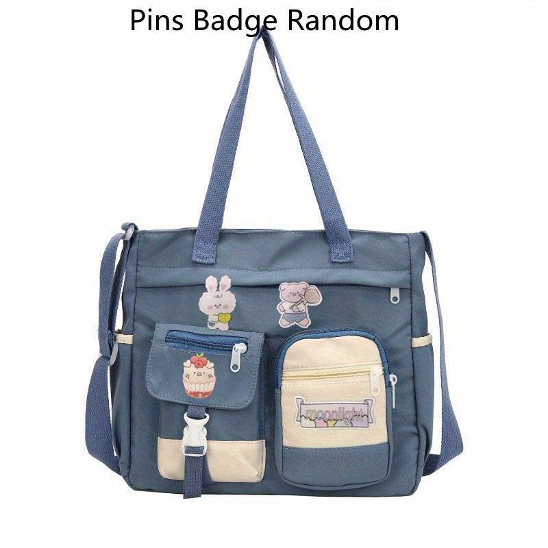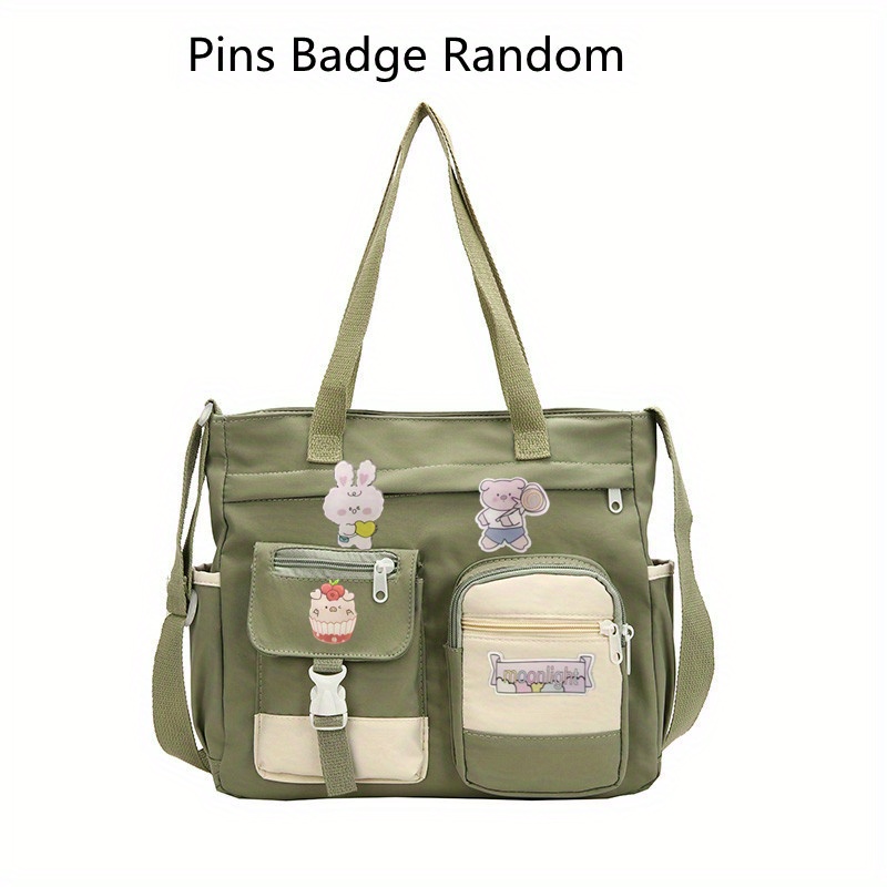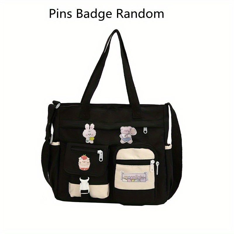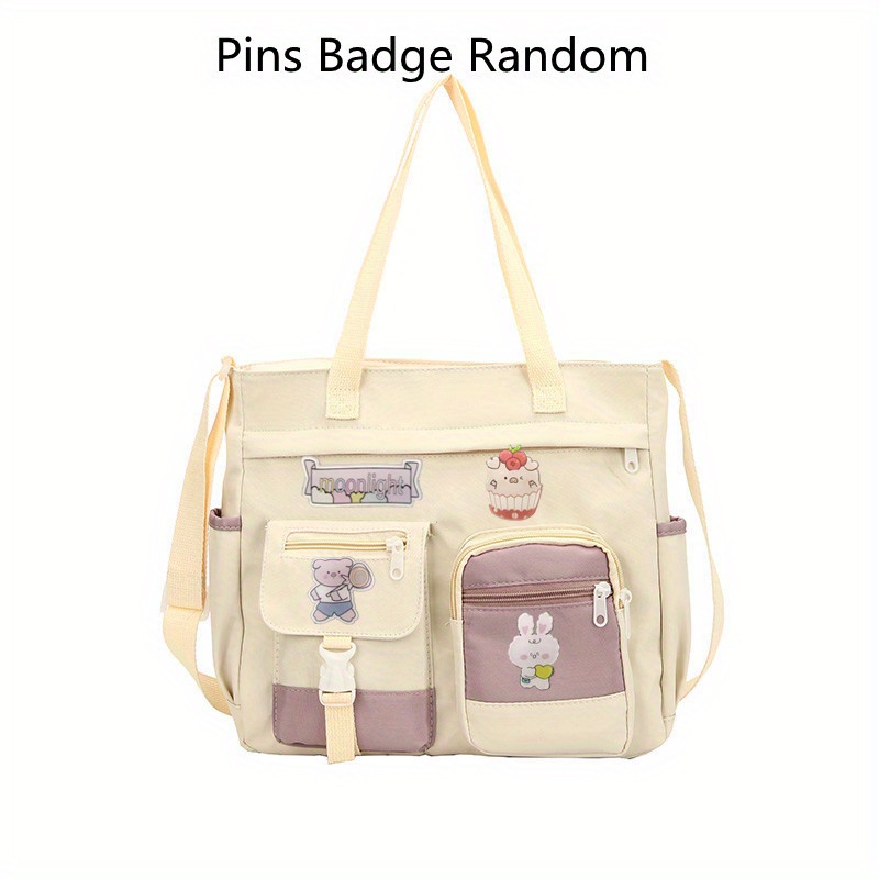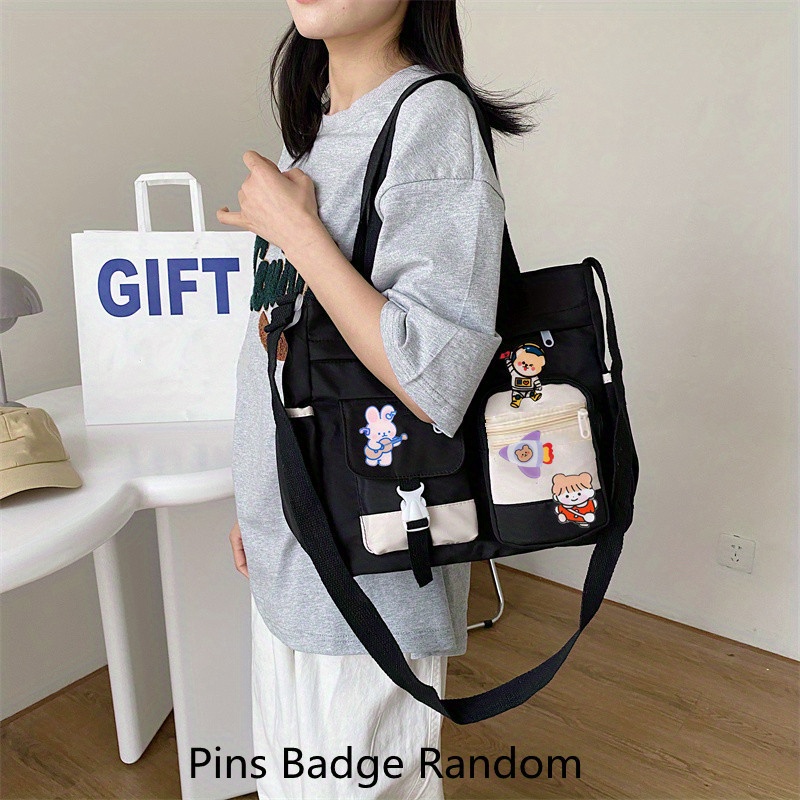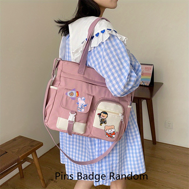 23% OFFWaterproof Nylon Shoulder Bag, Women's Cartoon Badge Decor Crossbody Zipper Purse For Students