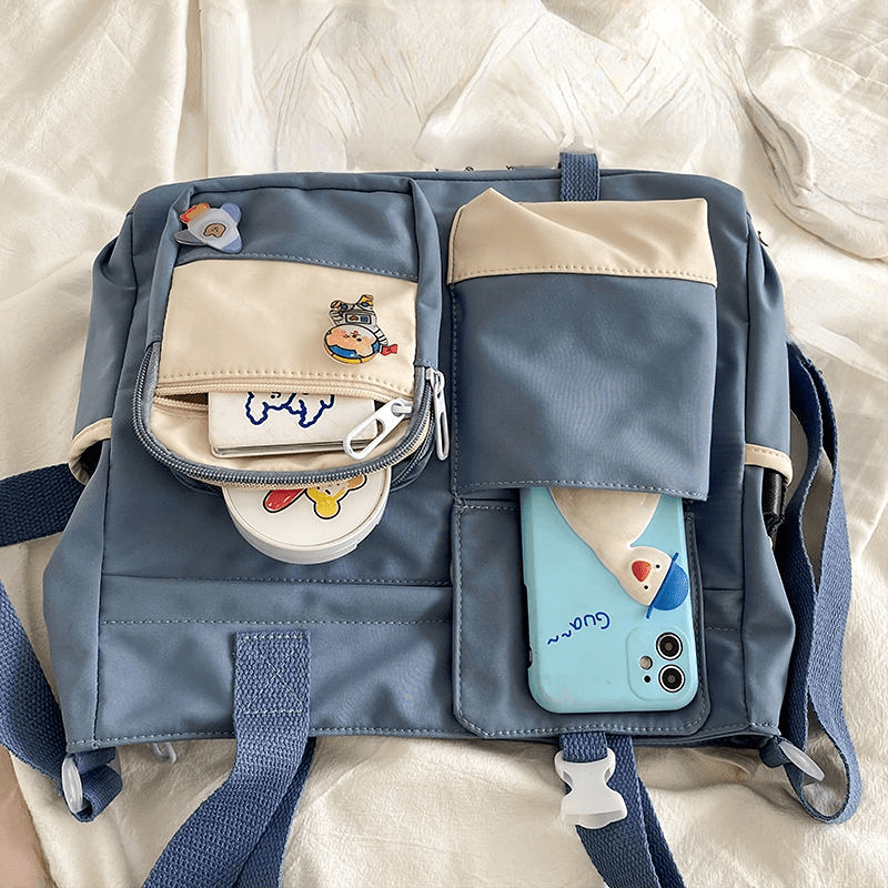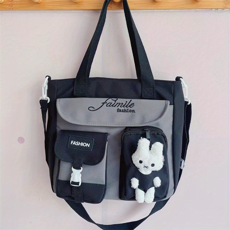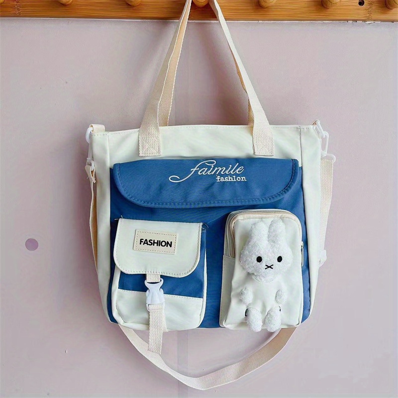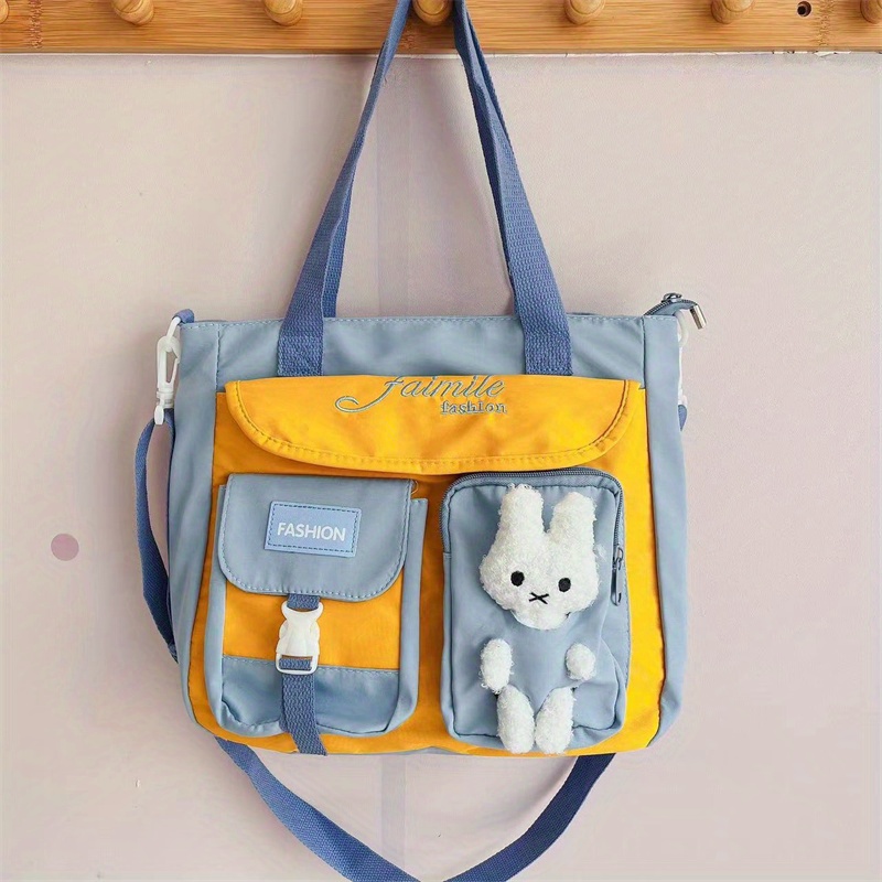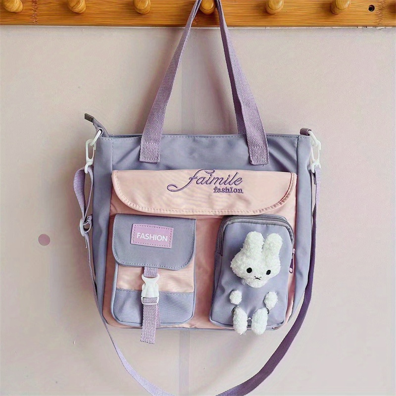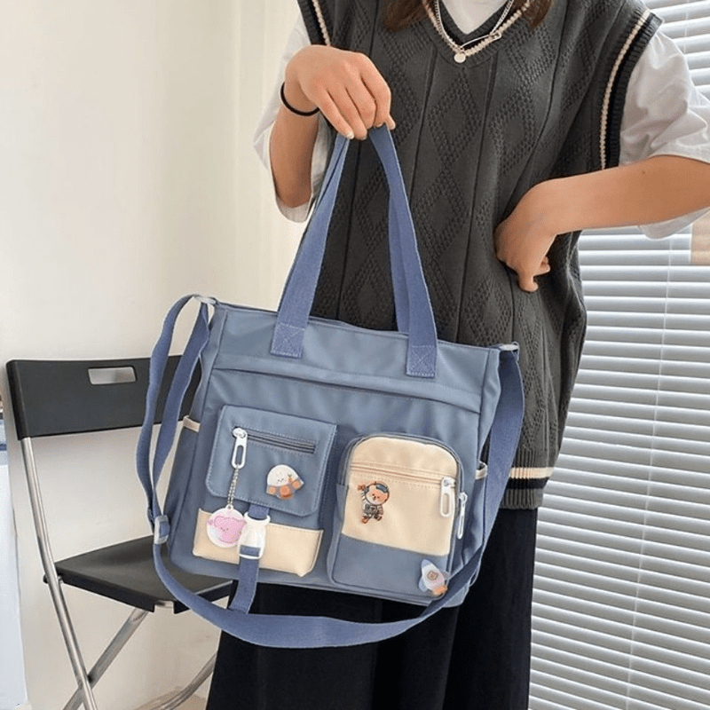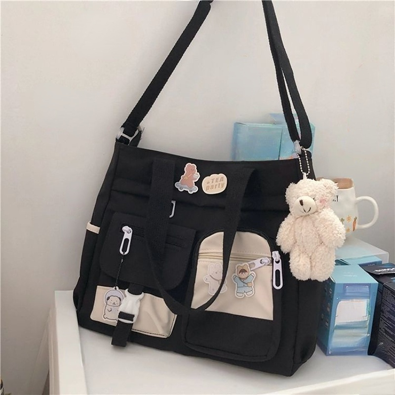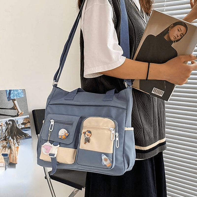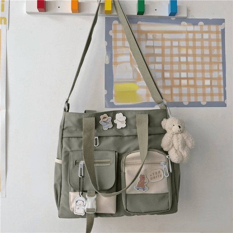 23% OFFWaterproof Nylon Shoulder Bag, Women's Cartoon Badge Decor Crossbody Zipper Purse For Students