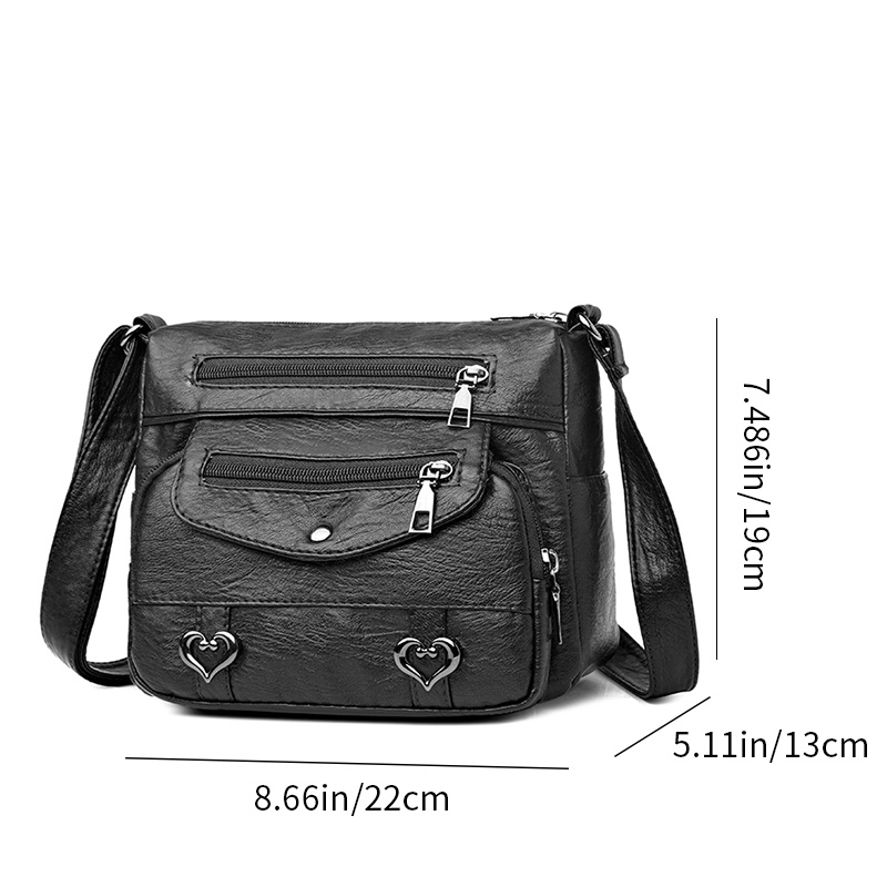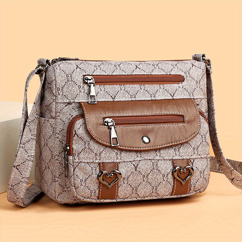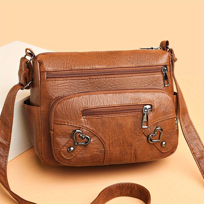 27% OFFHeart Decor Crossbody Bag, Vintage Multi Pockets Shoulder Bag, Women's Faux Leather Purse