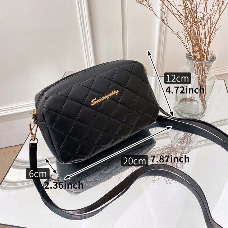 20% OFFArgyle Quilted Zipper Square Bag, Metal Letter Decor Shoulder Bag, Fashion Crossbody Purse For Women