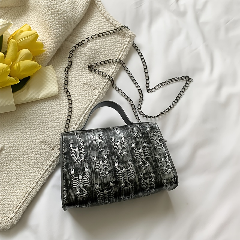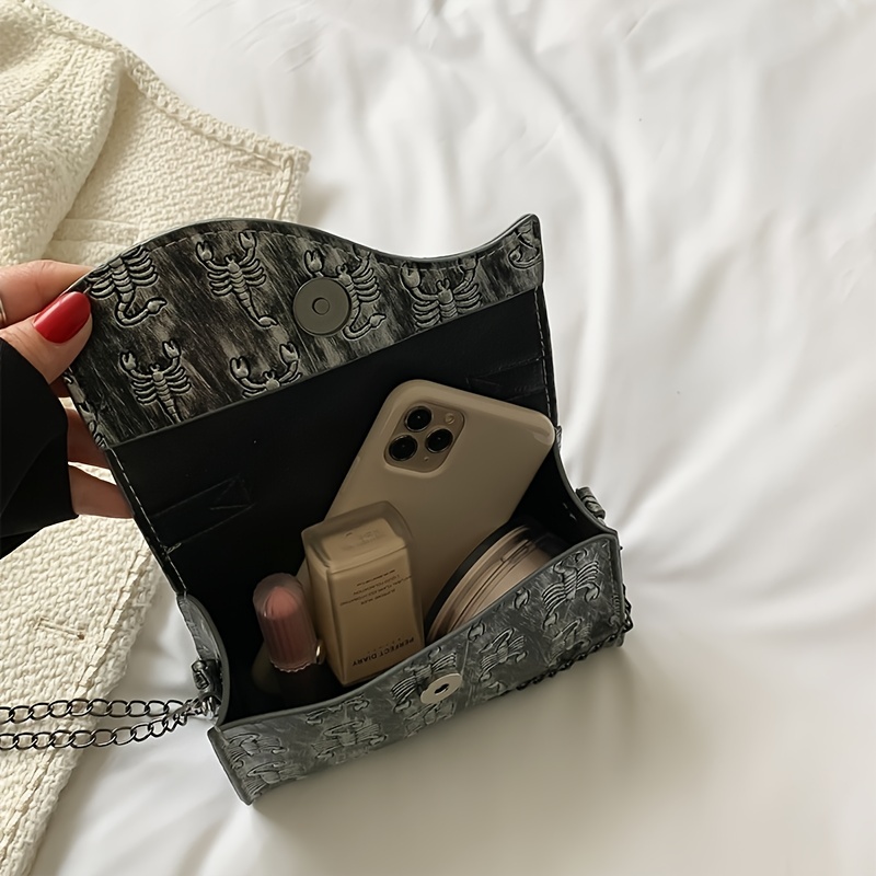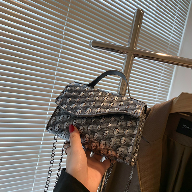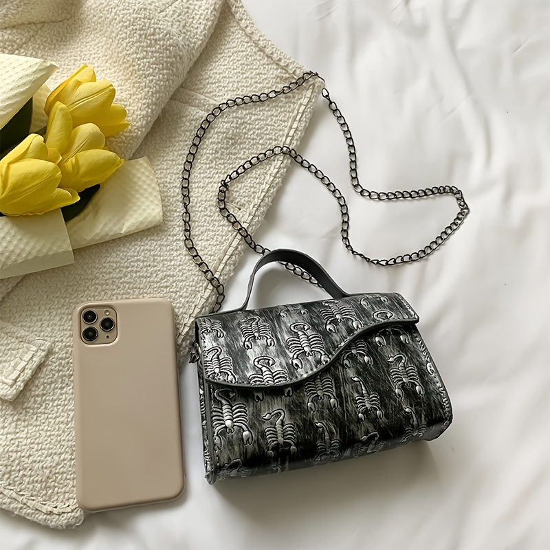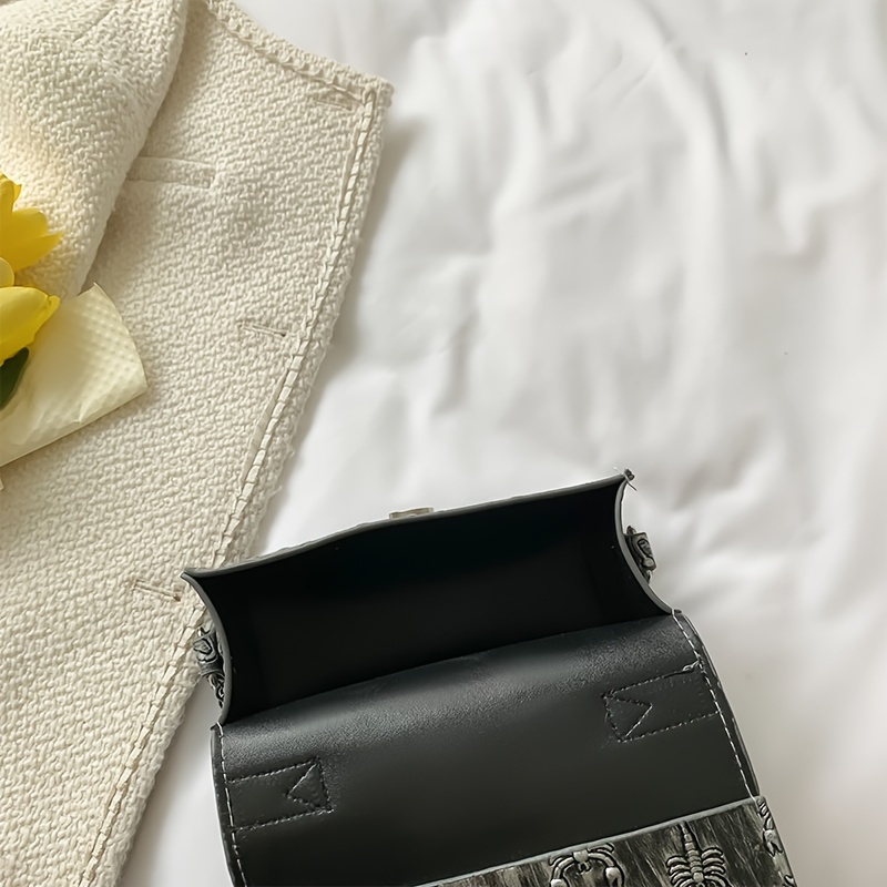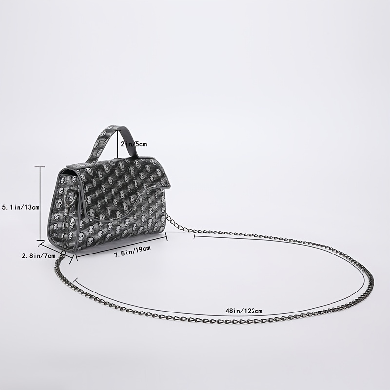 21% OFFMini Skull Embossed Chain Square Bag, Women's Trendy Flap Shoulder Purse, Crossbody Hand Bag