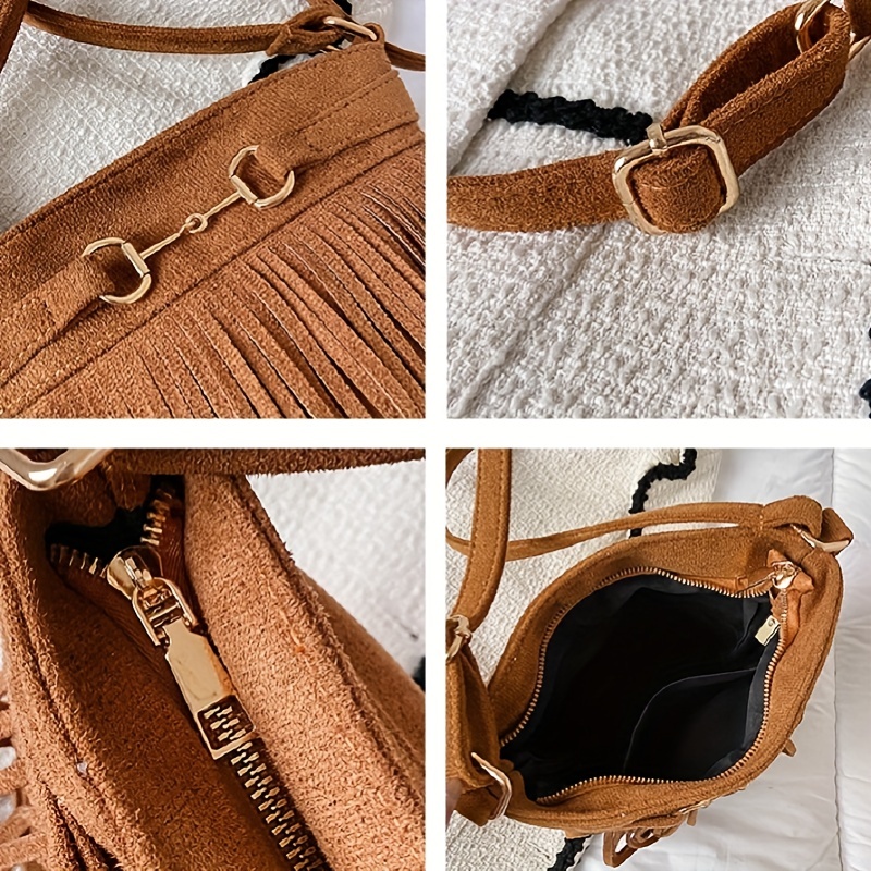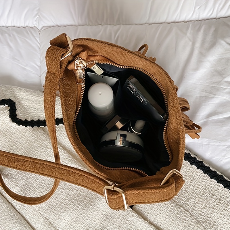 33% OFFVintage Tassel Crossbody Bag, Women's Suede Bucket Bag, Solid Color Purses For Everyday