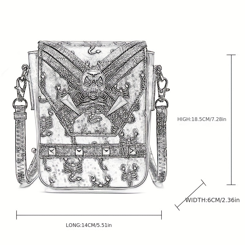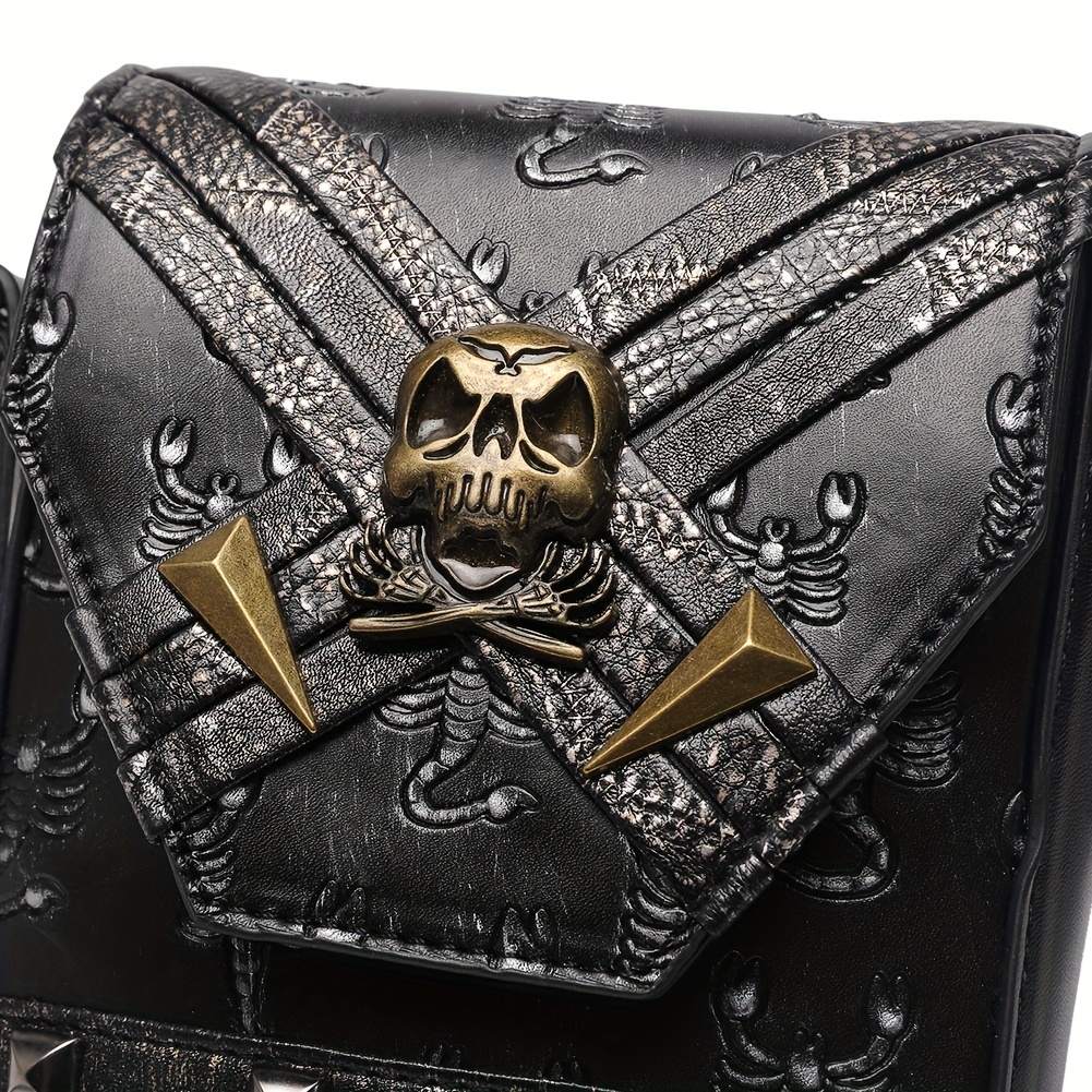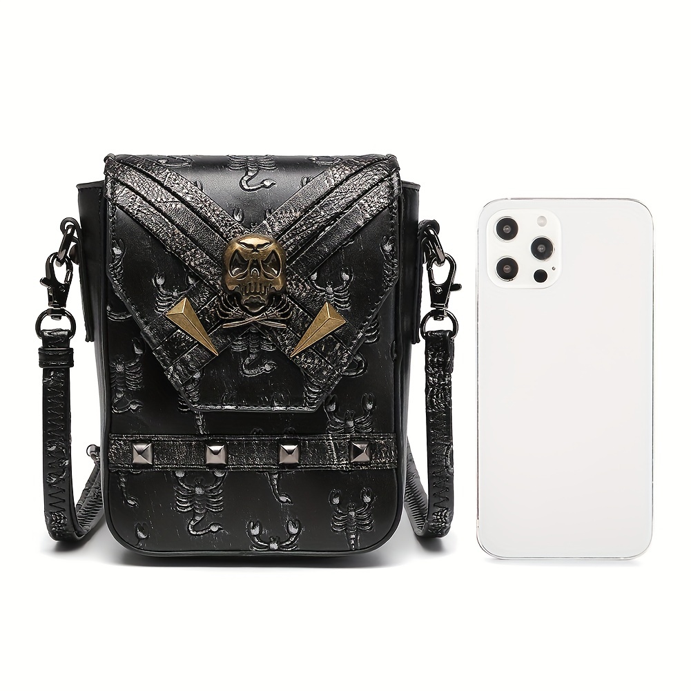 26% OFFPunk Style Crossbody Bag, Halloween Skull Decor Flap Purse, Gothic PU Leather Phone Bag