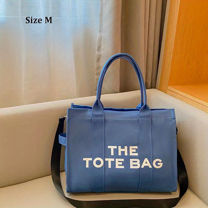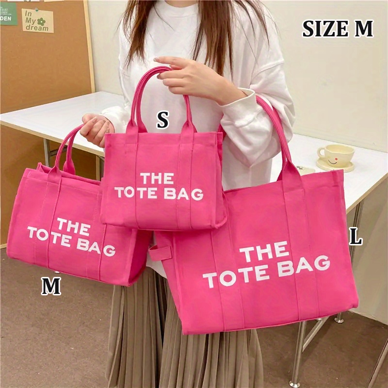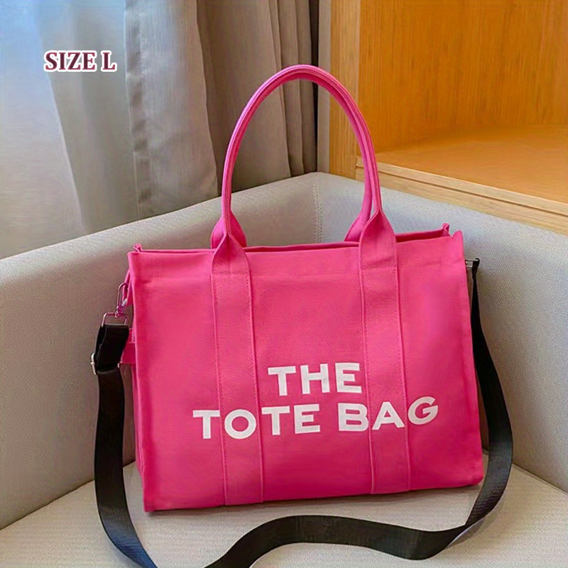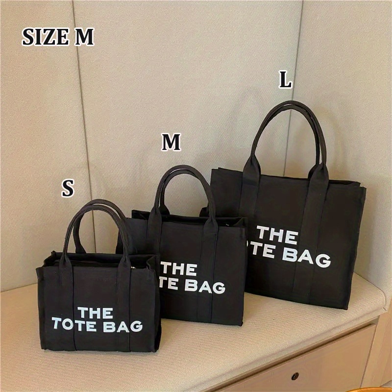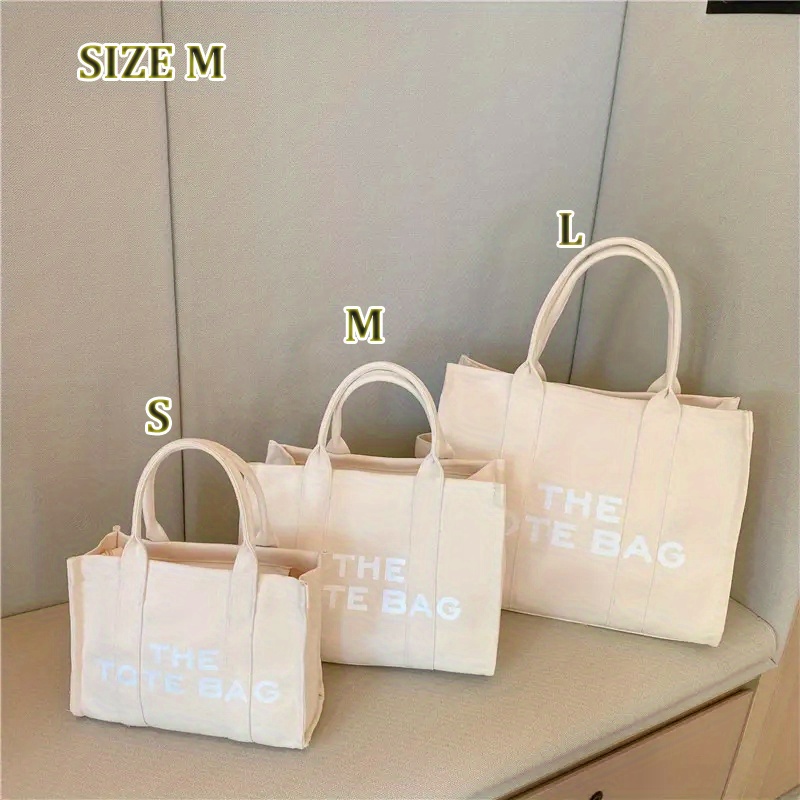 27% OFFLarge Capacity Casual Tote Bag, Solid Color Top Handle Shoulder Bag, Letter Print Canvas Handbag