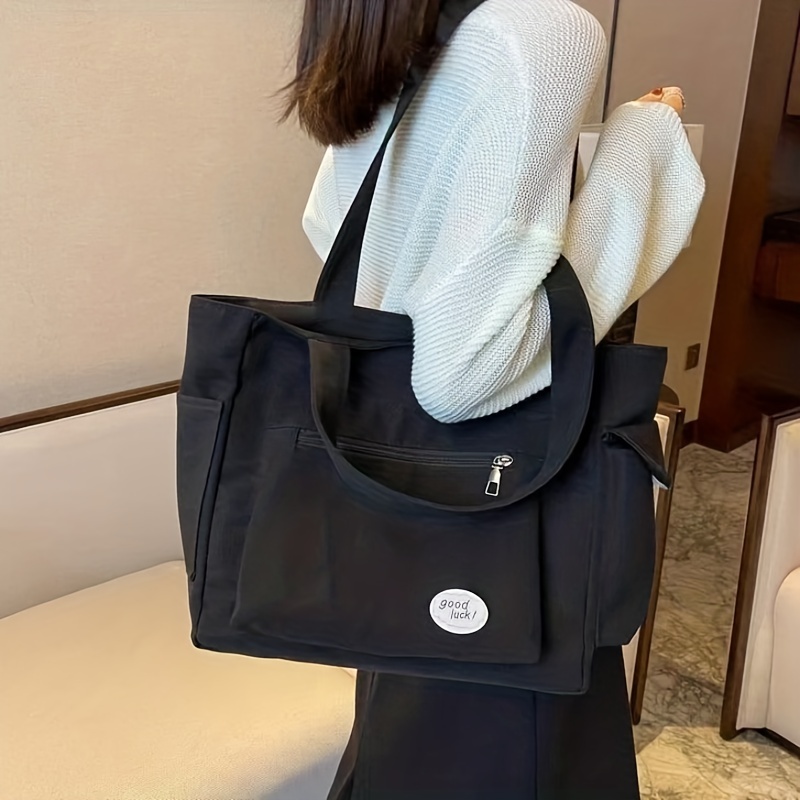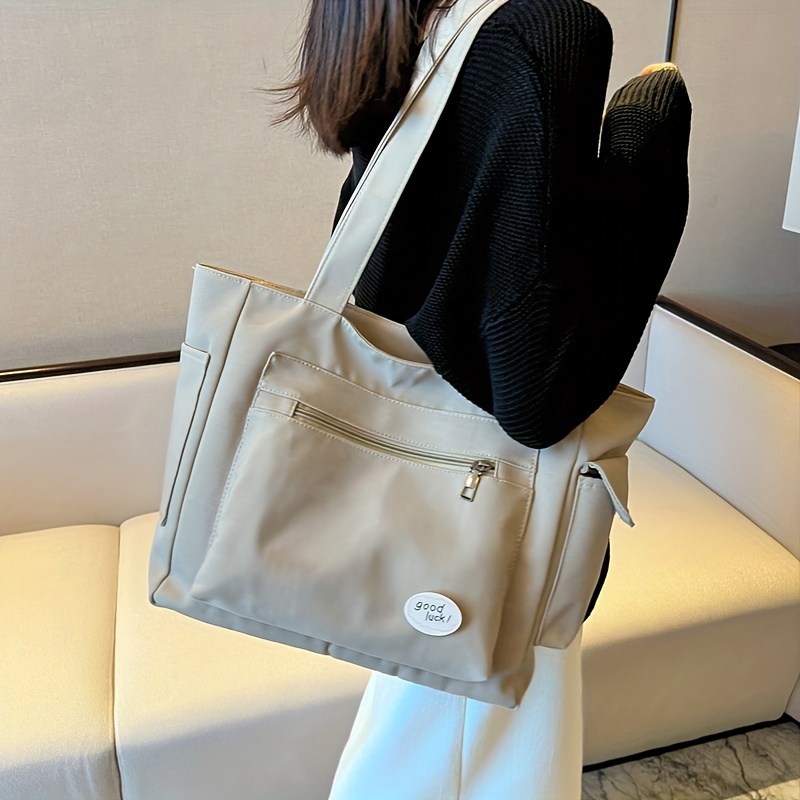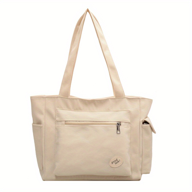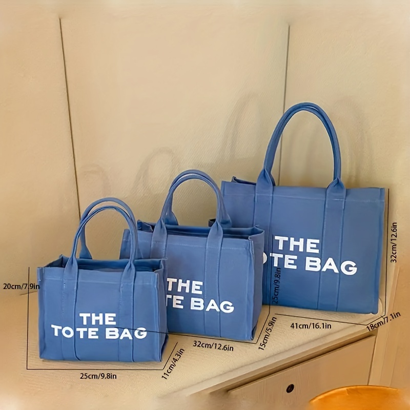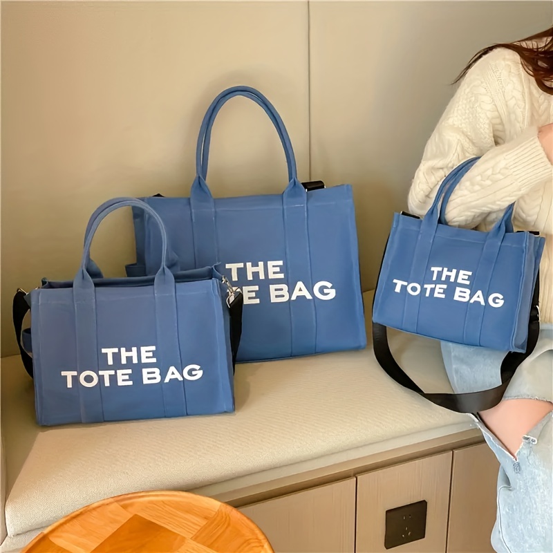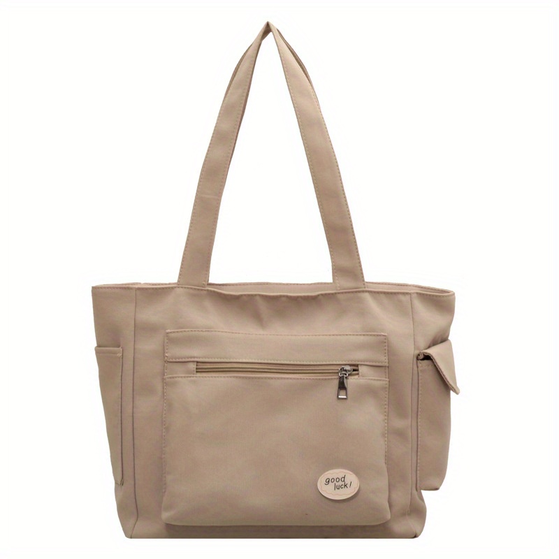 27% OFFLarge Capacity Casual Tote Bag, Solid Color Top Handle Shoulder Bag, Letter Print Canvas Handbag