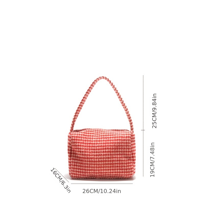 24% OFFGingham Pattern Zipper Shoulder Bag, Women's Trendy Handbag, Satchel Purse For Autumn And Winter