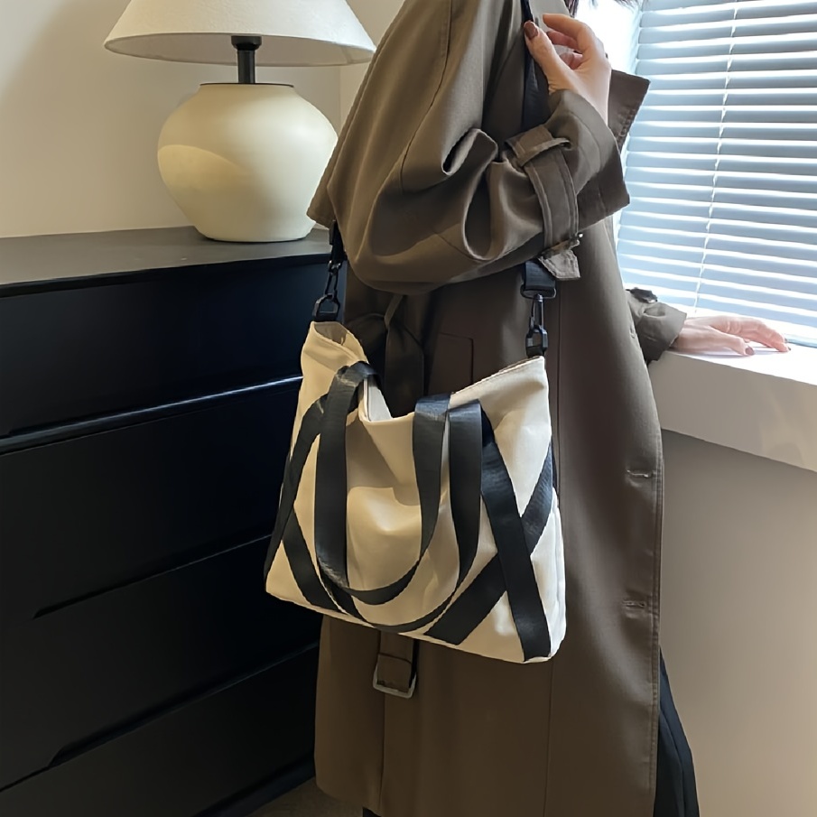 28% OFFSimple Canvas Shoulder Bag, Large Capacity Tote Bag, Casual Handbags For Work School Travel