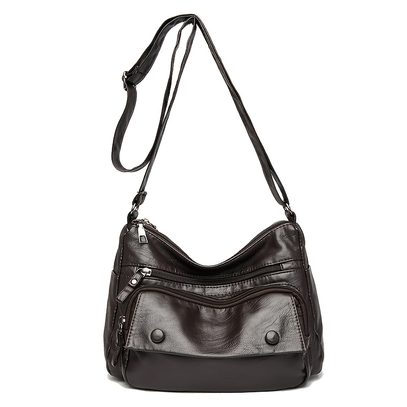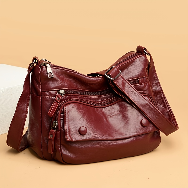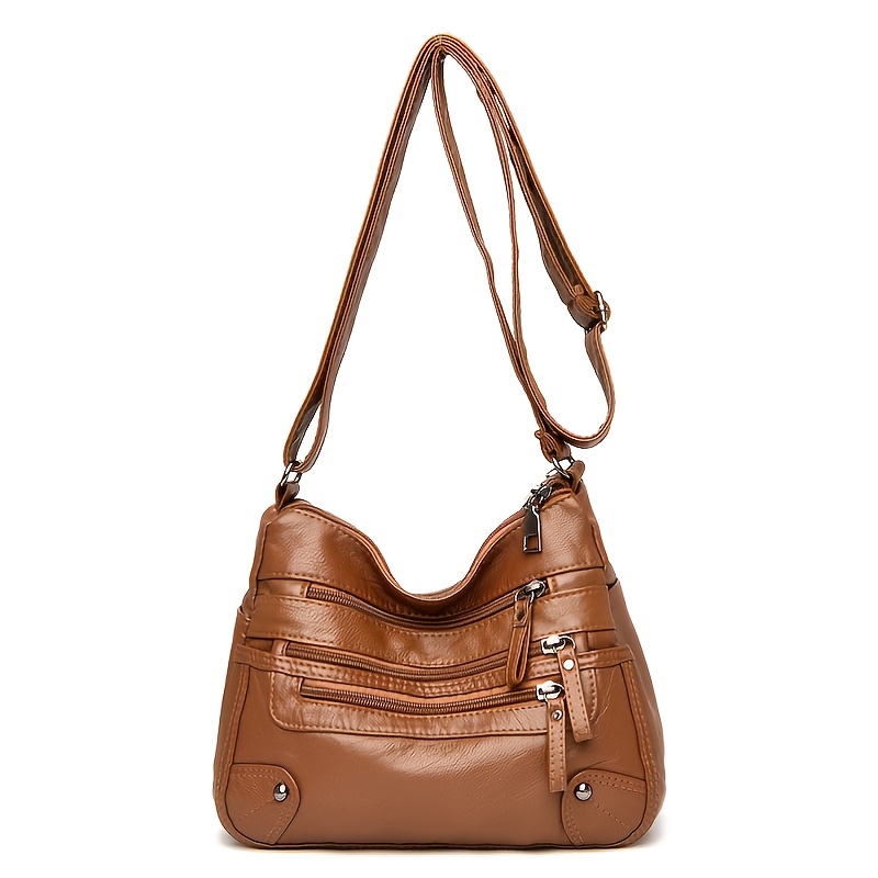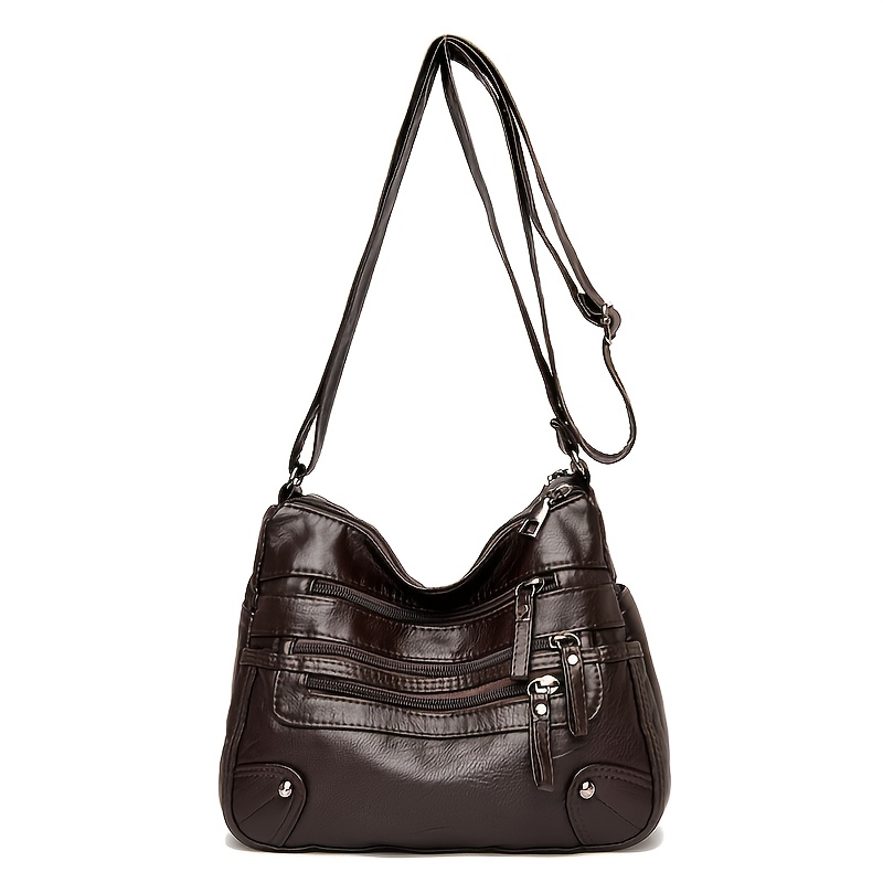 22% OFFMiddle Aged Faux Leather Shoulder Bag, Multi Zipper Crossbody Bag, Casual Solid Color Women's Purses