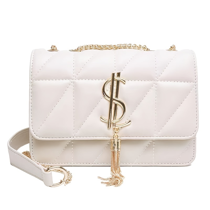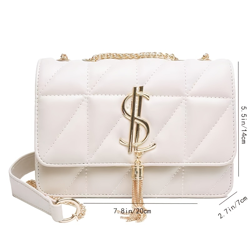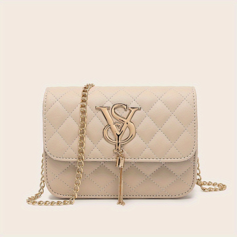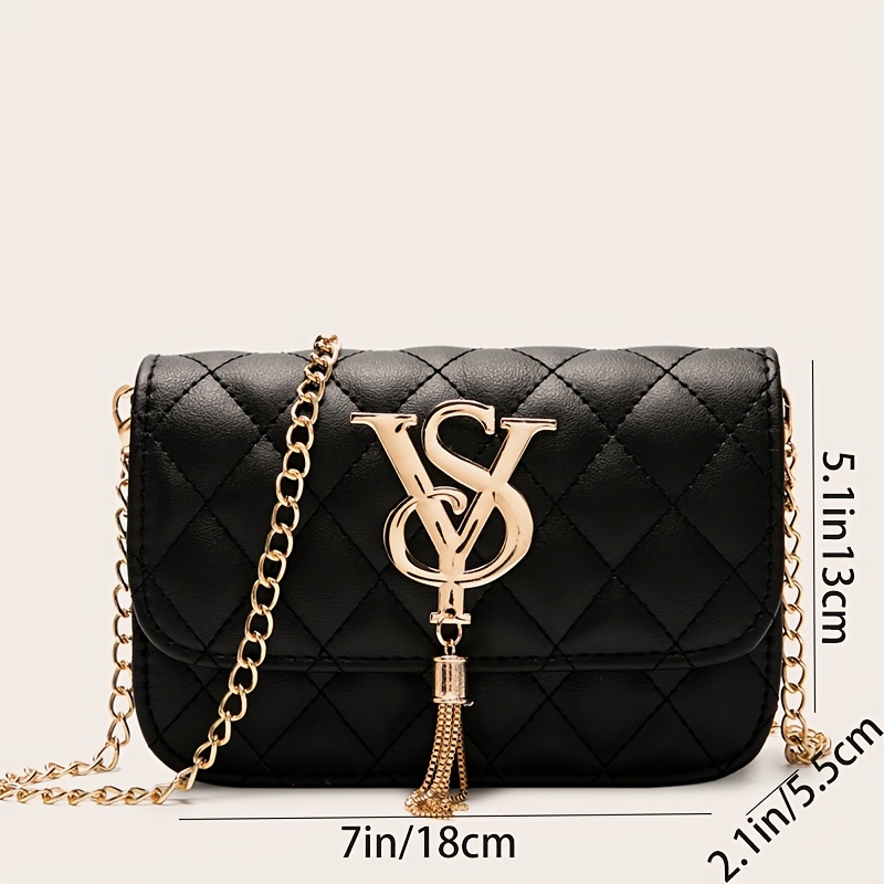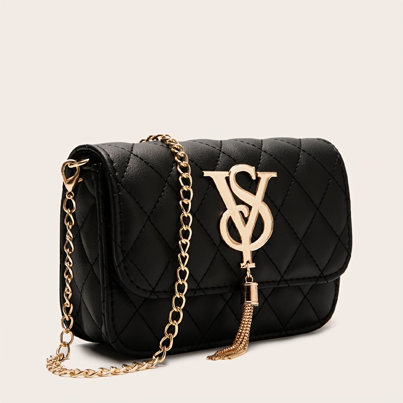 22% OFFRhombus Quilted Shoulder Bag, Letter Tassel Decor Crossbody Bag With Chain Strap For Work