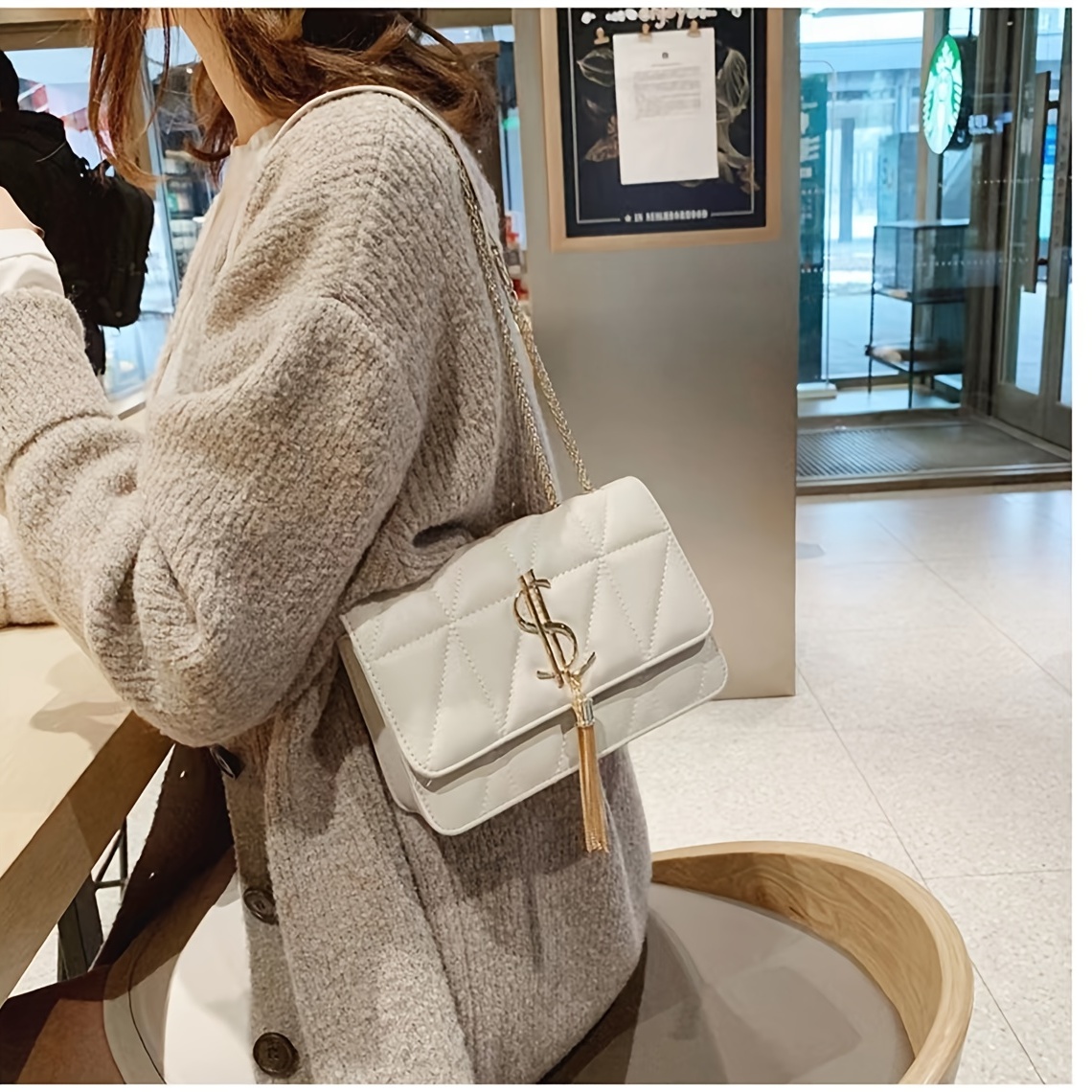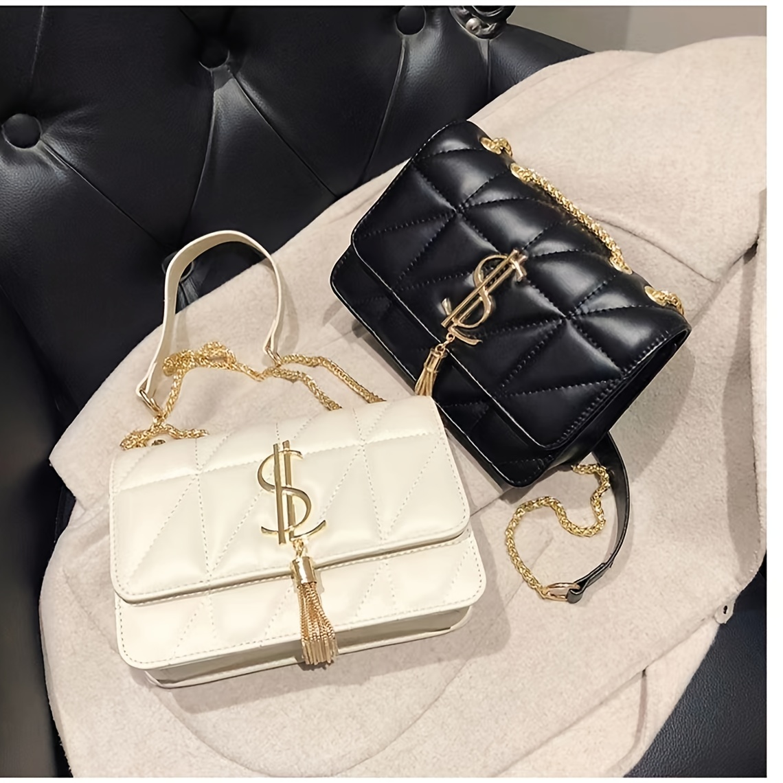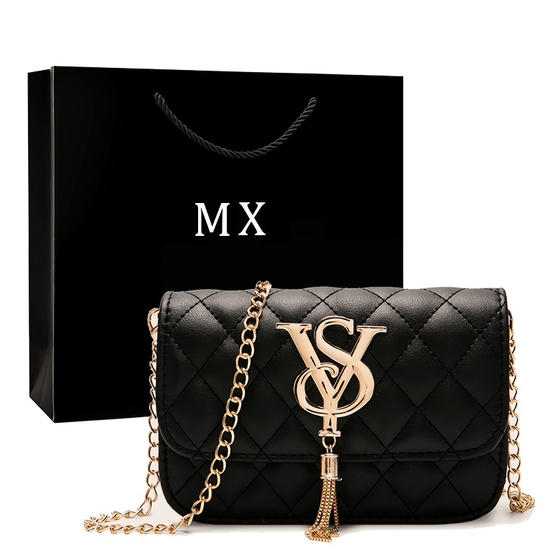 22% OFFRhombus Quilted Shoulder Bag, Letter Tassel Decor Crossbody Bag With Chain Strap For Work