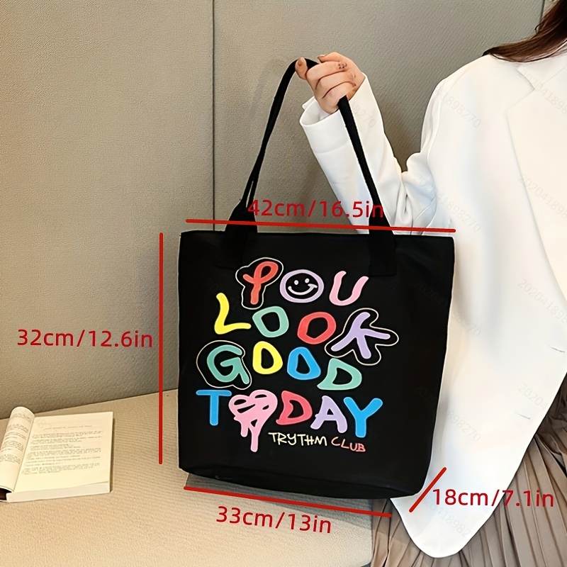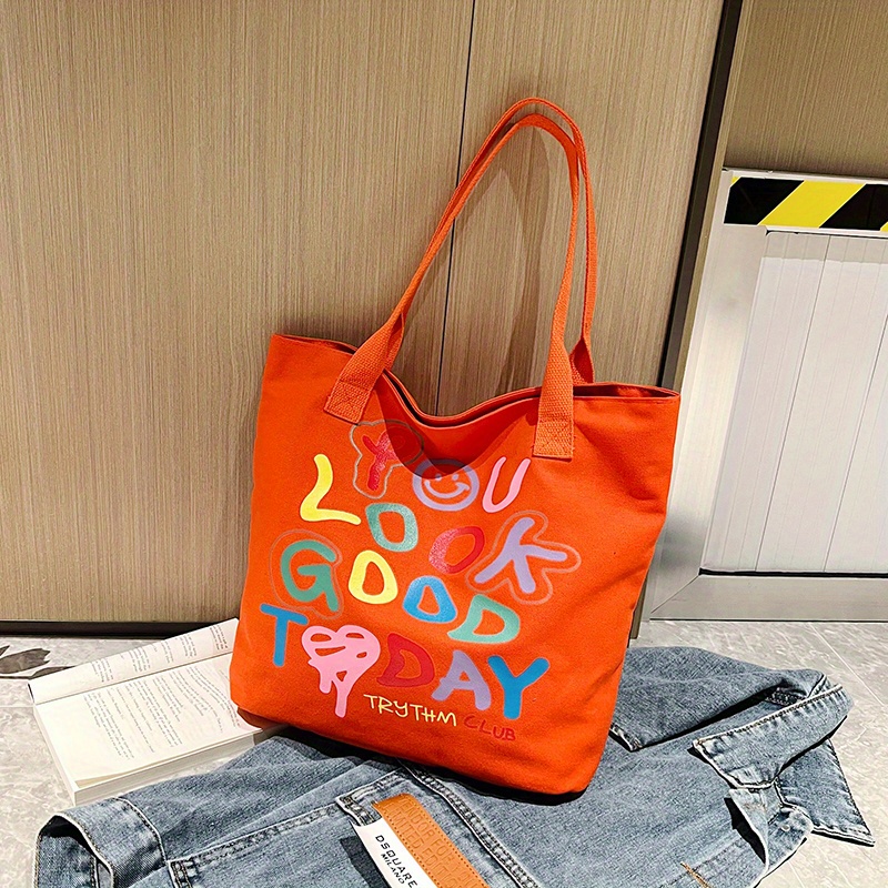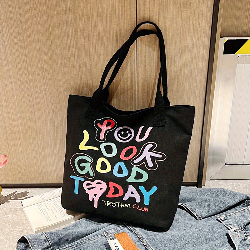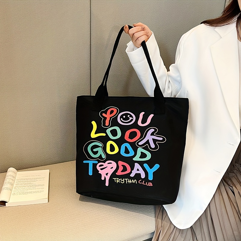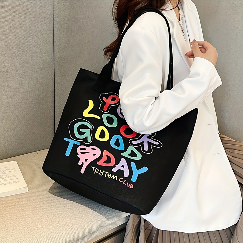 24% OFFGraffiti Letters Tote Bag, Trendy Canvas Handbag For Women, Large Capacity Shoulder Bag For Work School