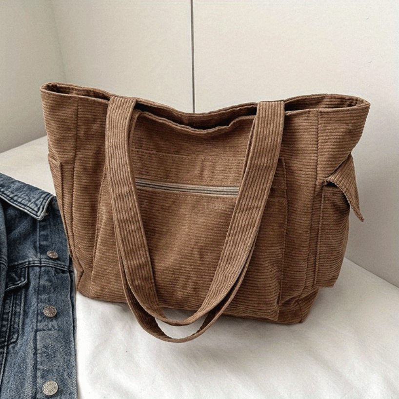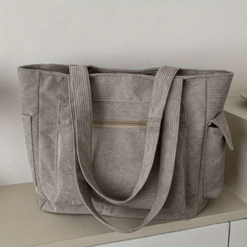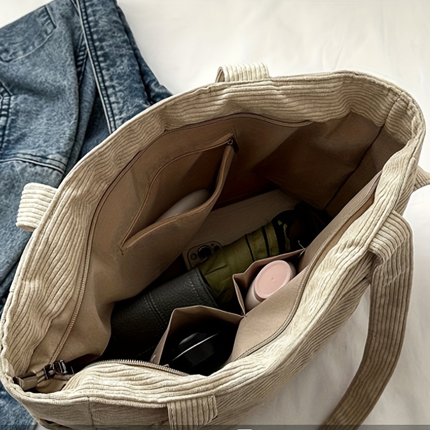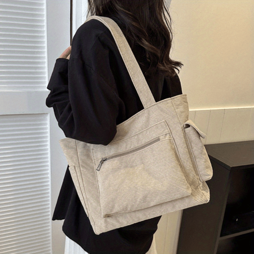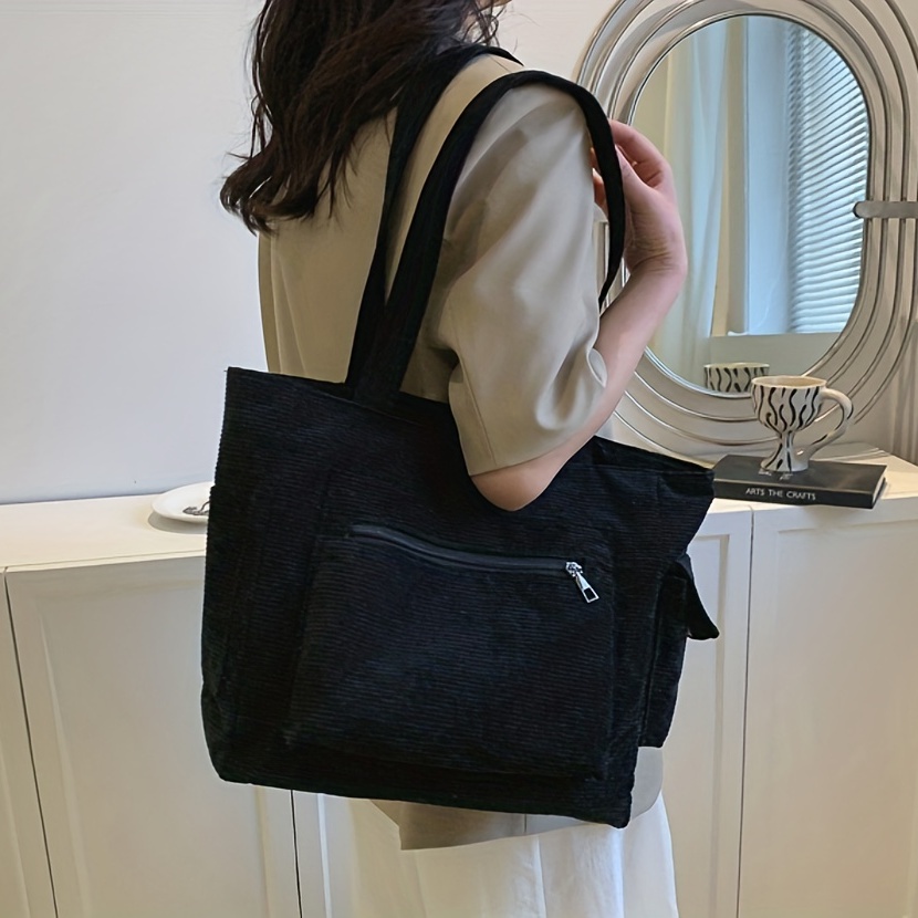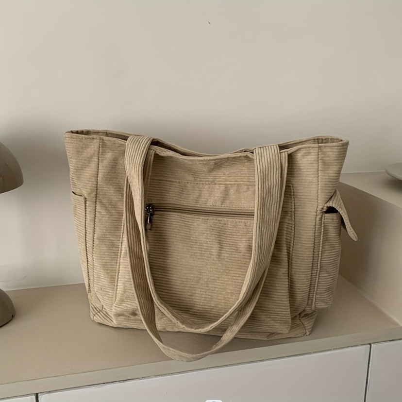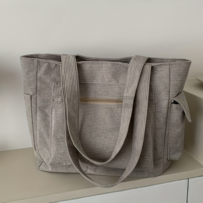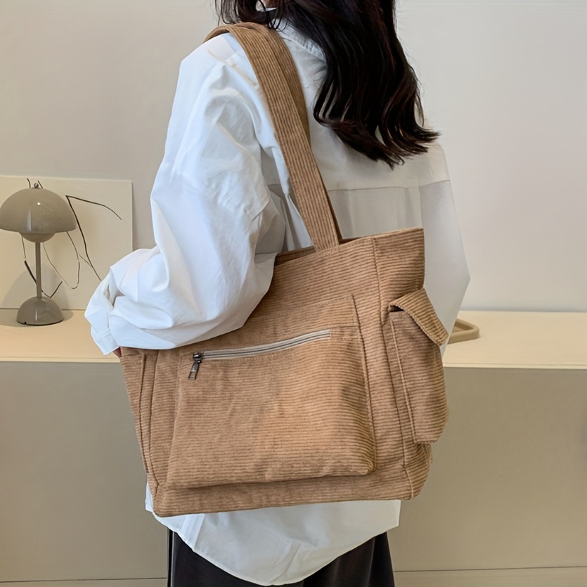 27% OFFSimple Corduroy Shoulder Bag, Large Capacity Commuter Handbags, Women's Multi Pocket Crossbody Bag