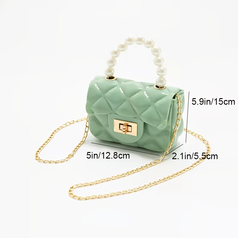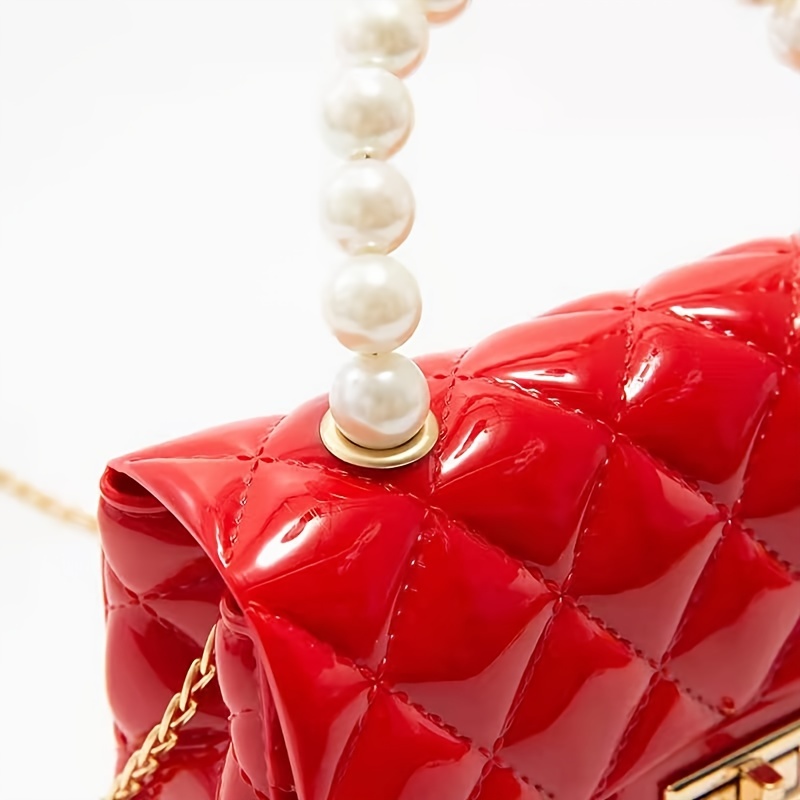 24% OFFMini Faux Pearl Handle Purse, Argyle Quilted Crossbody Bag, Buckle Decor Chain Shoulder Bag (5.9*5*2.1) Inch