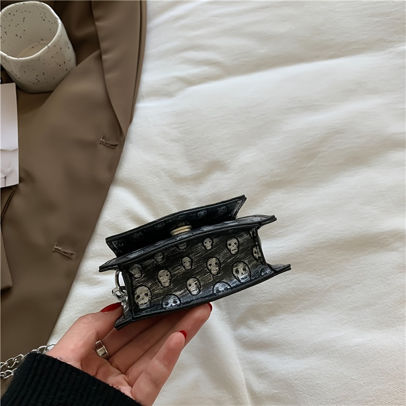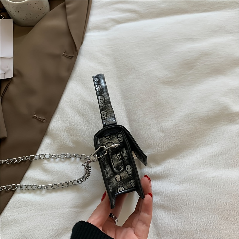 22% OFFSkull Pattern Flap Square Bag, Stylish Hand Bag, Small Chain Shoulder Purse For Work